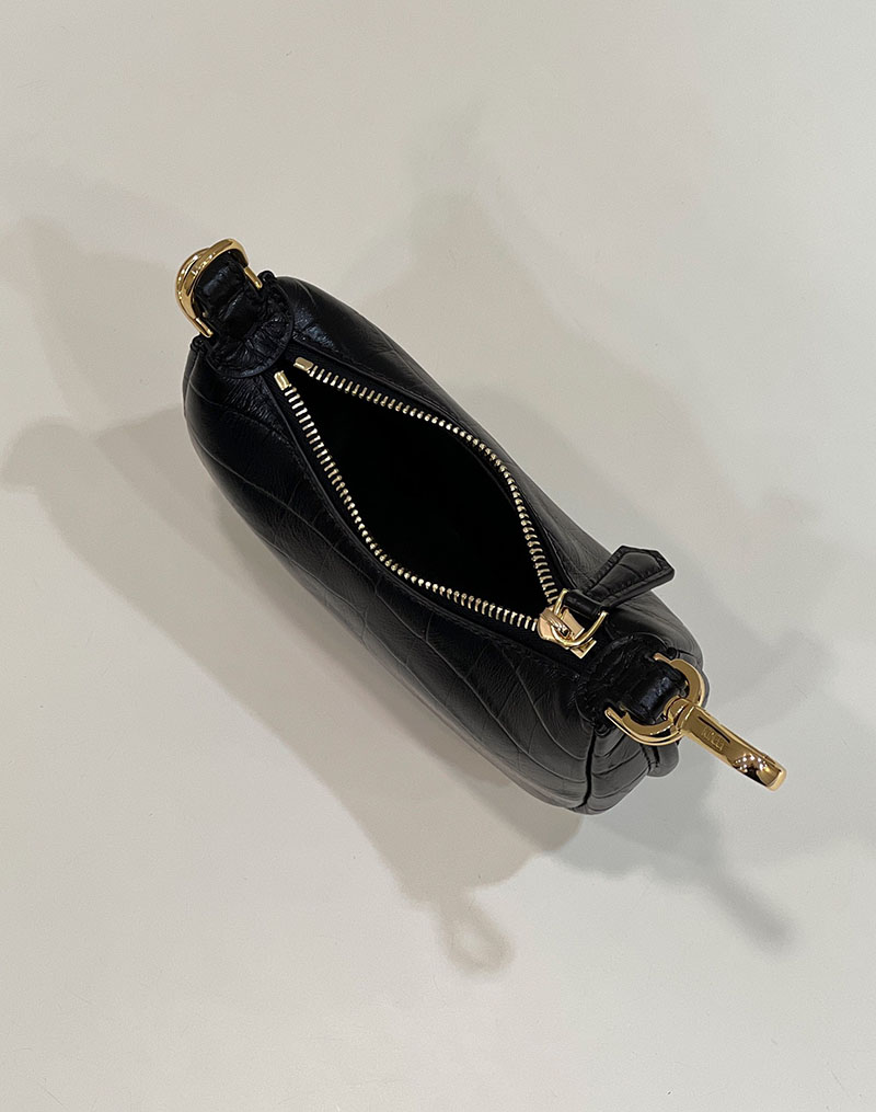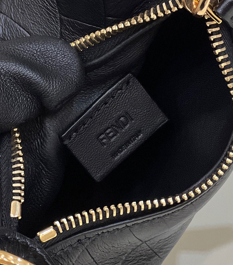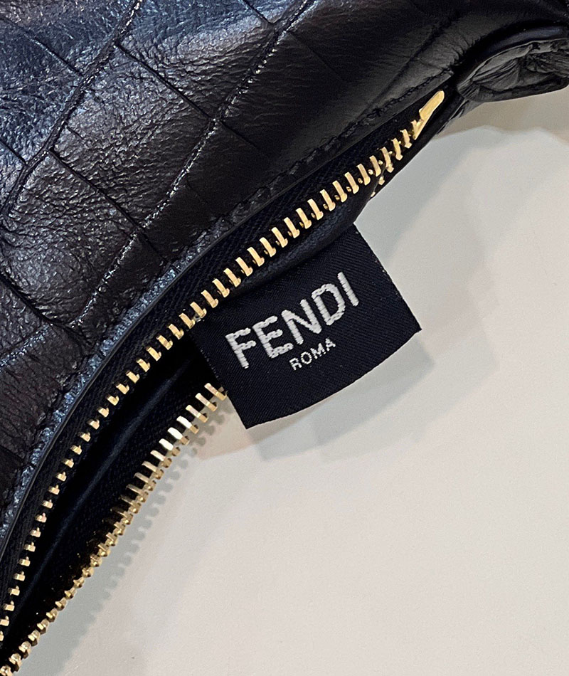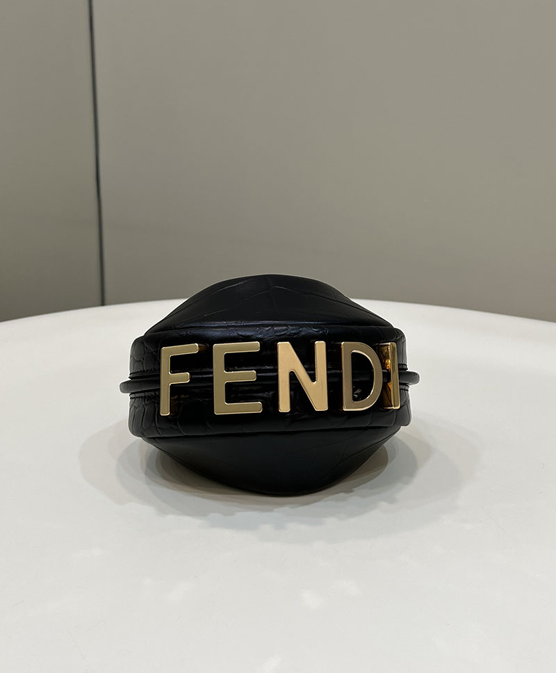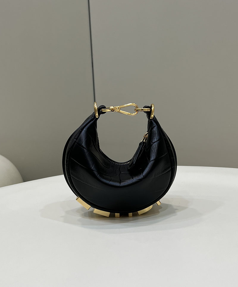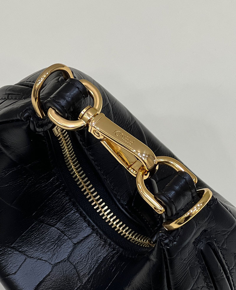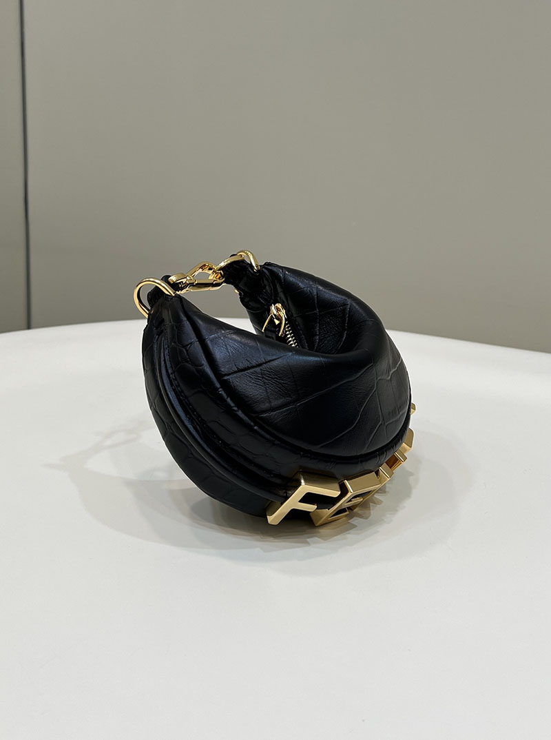 フェンディ 人気バッグ FENDI ミニクロックエフェクト ムーンバッグ ブラック 2520066 フェンディ クロコ バッグ