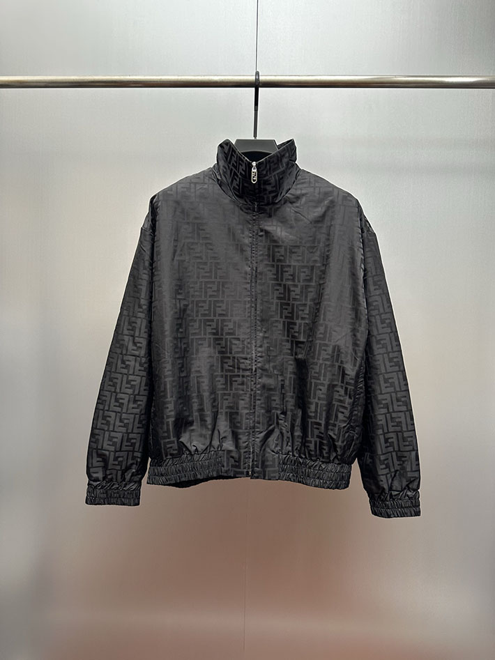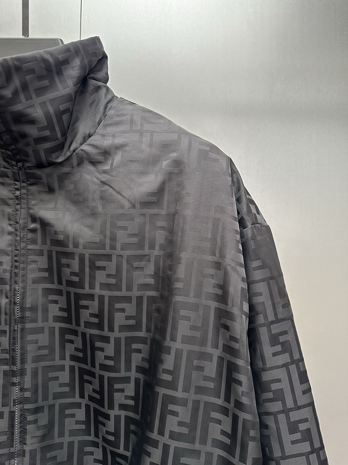 最高級フェンディスーパーコピー ナイロンジャケット FENDI FF nylon bomber ブラック 2525200 ジャケット 流行り メンズ