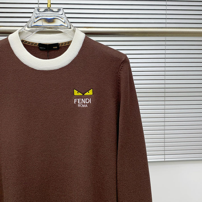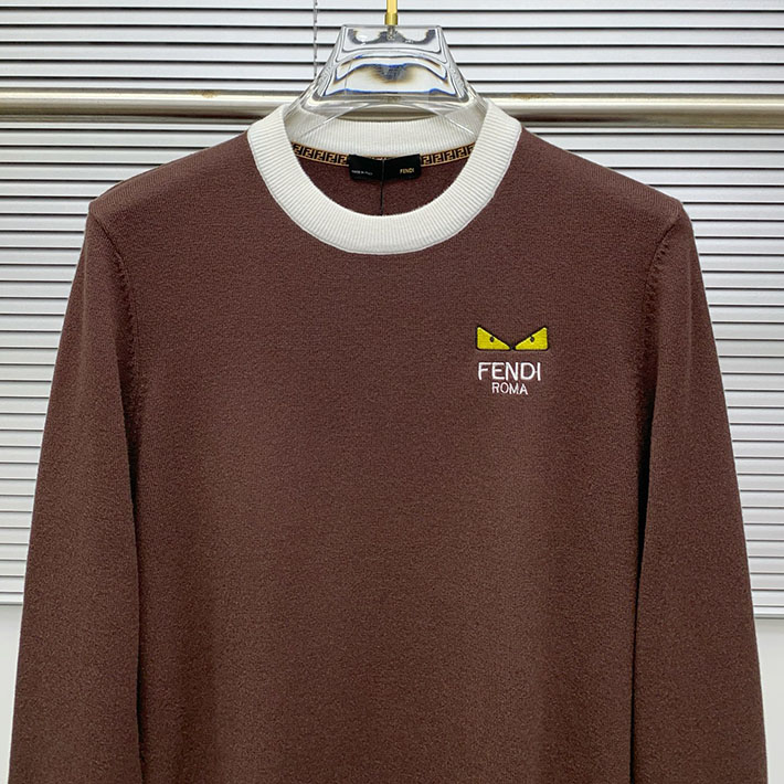 最高級フェンディスーパーコピー FENDI セーター ブランドロゴ ニット クルーネック ブラウン 2524738 フェンディ セーター メンズ