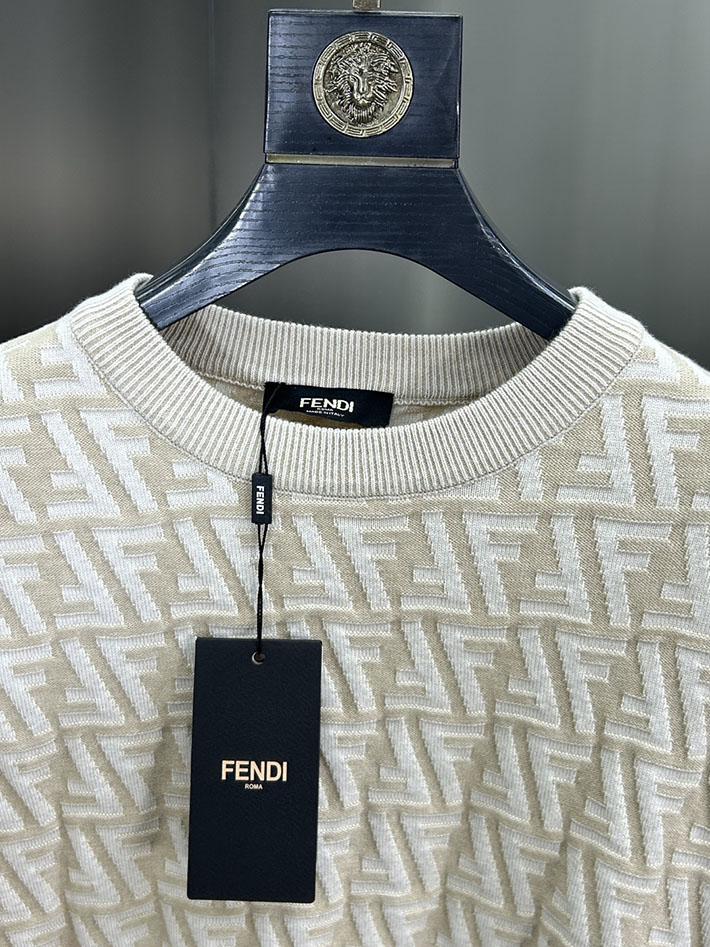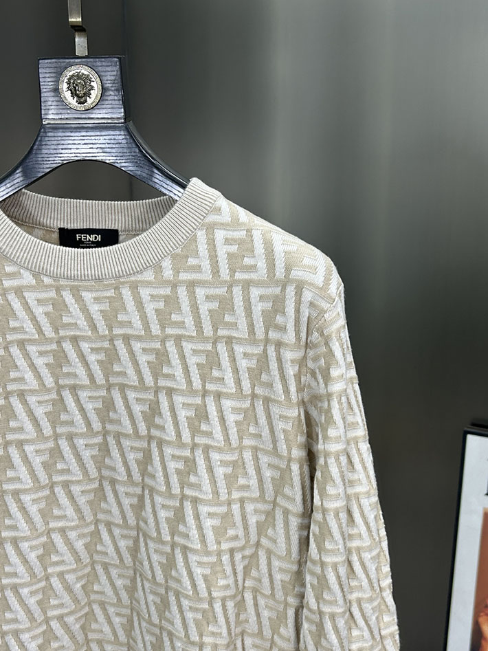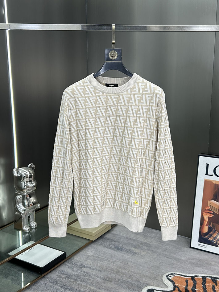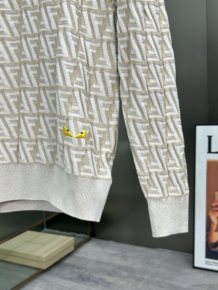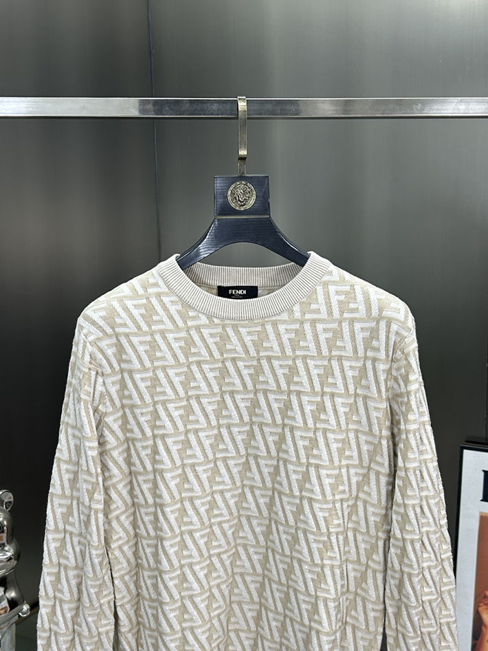 最高級フェンディスーパーコピー FENDI FF クルーネックニットセーター トップス ホワイト 25252367 ビジネス セーター メンズ おしゃれ