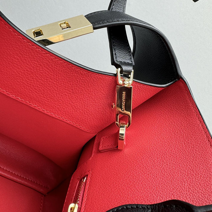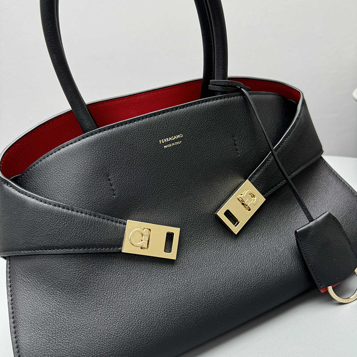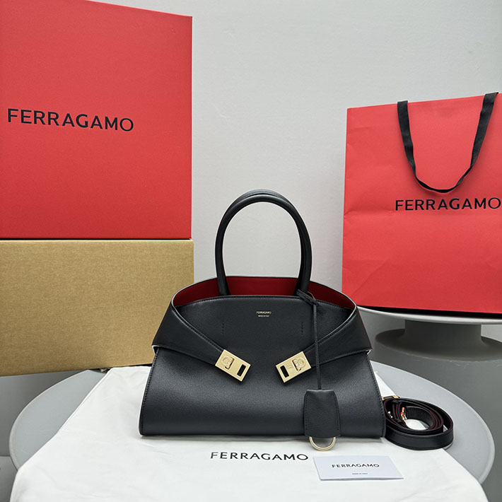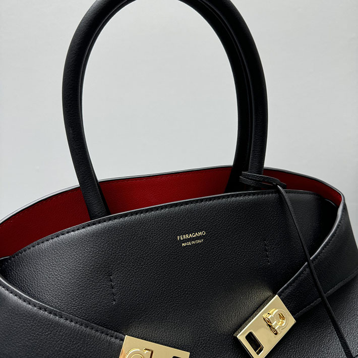 FERRAGAMO 新作バッグ フェラガモ バッグ アウトレット Hug ハンドバッグ(S) ブラック/バーガンディ 215608 767814