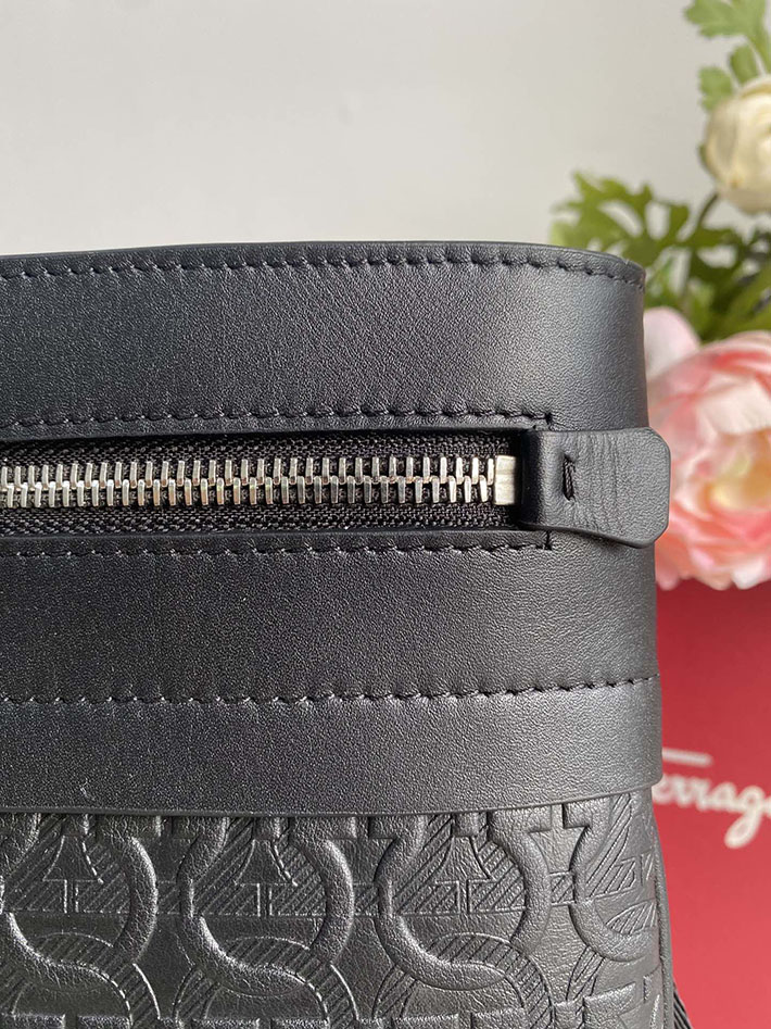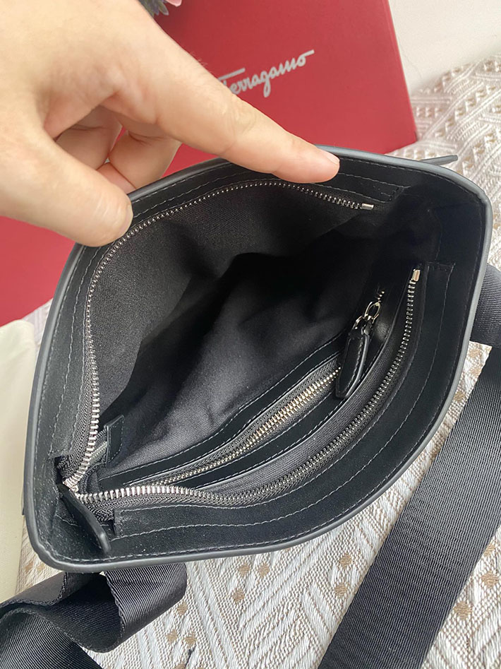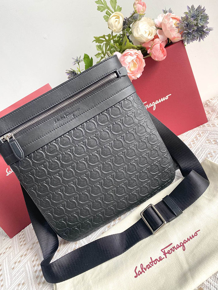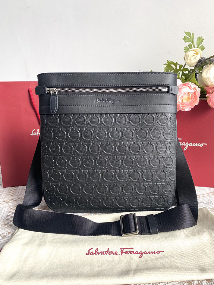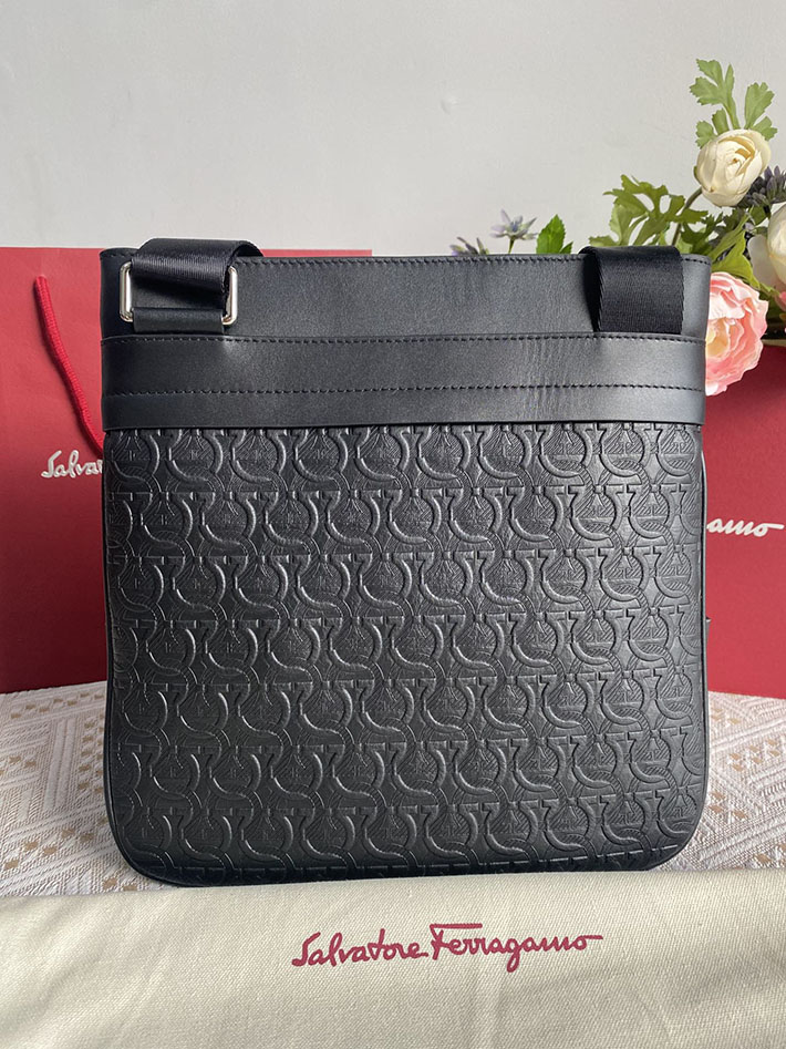 モデル:サルヴァトーレフェラガモ 24 A426 レザー ガンチーニ メッセンジャーバッグ キーリング付き 鞄 NERO メンズ