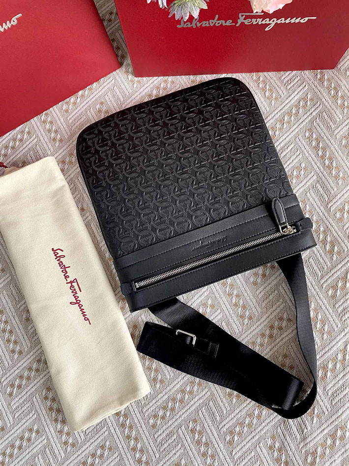FERRAGAMO 新作バッグ サルヴァトーレフェラガモ 24 A426 レザー ガンチーニ メッセンジャーバッグ キーリング付き 鞄 NERO メンズ 24A426 0723818