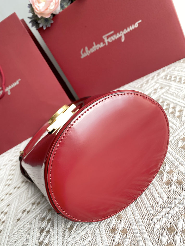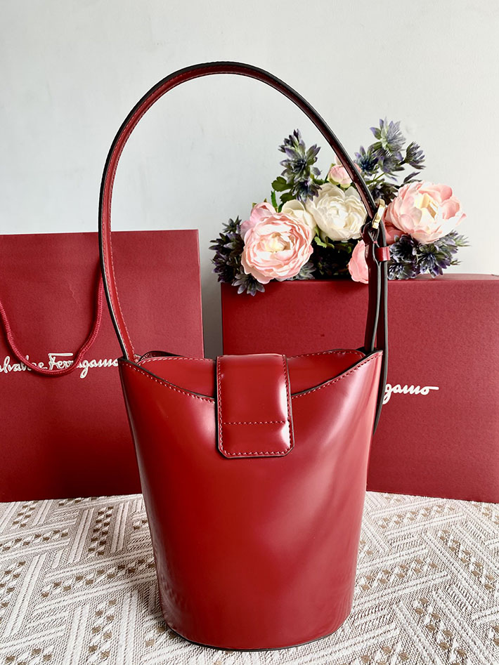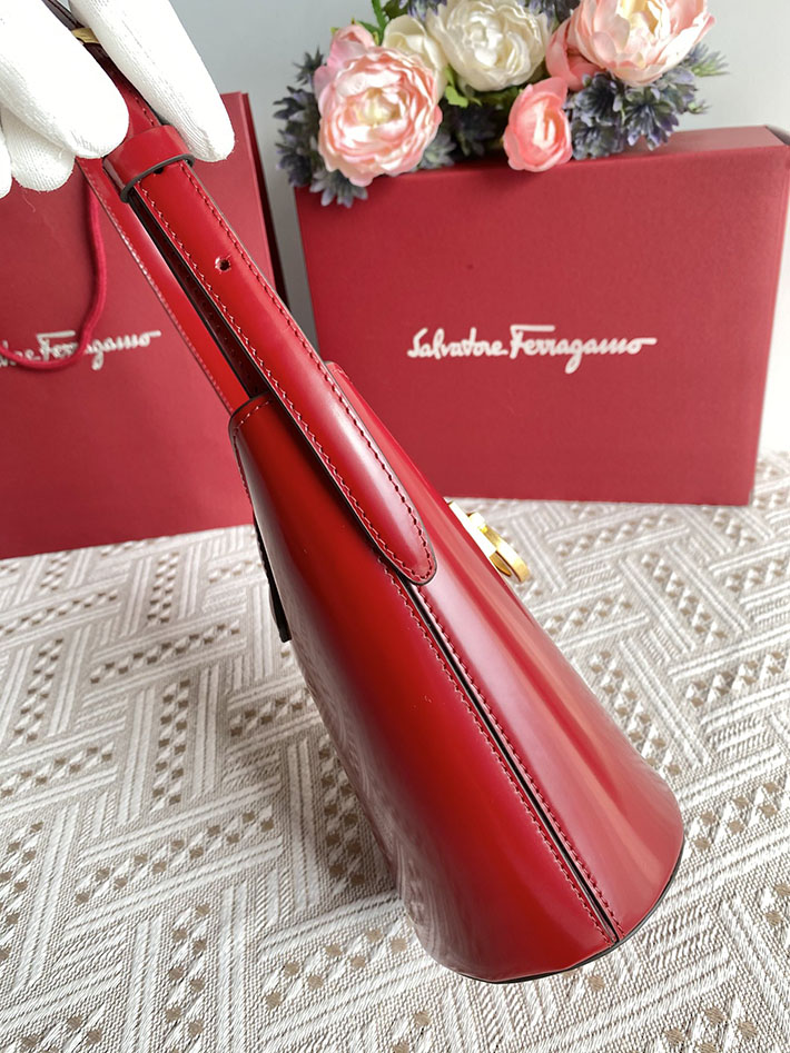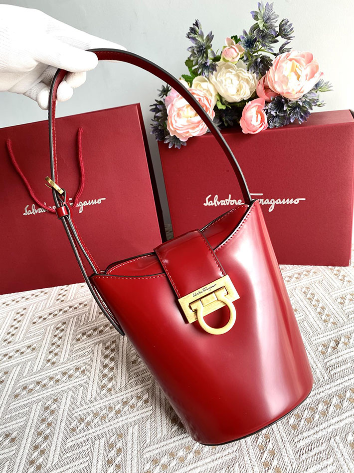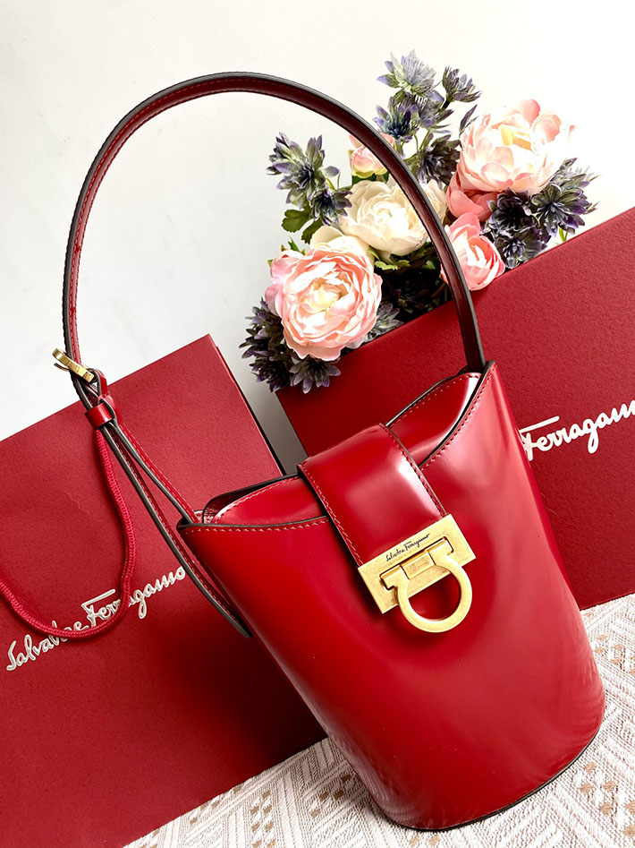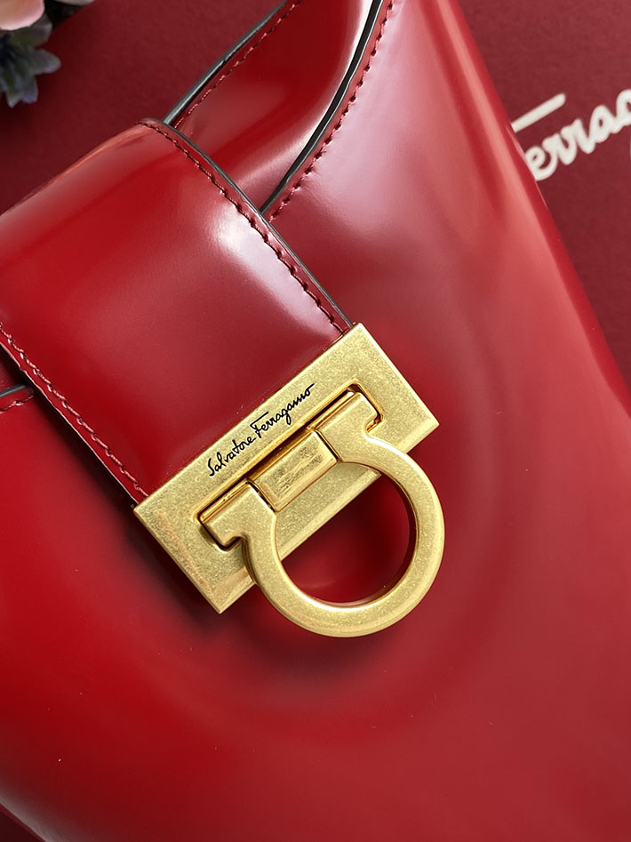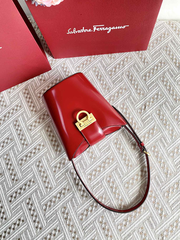 FERRAGAMO 新作バッグ フェラガモ バッグ アウトレット レディース バックル ホーボーバッグ レッド 2520526 Ferragamo バッグ アウトレット