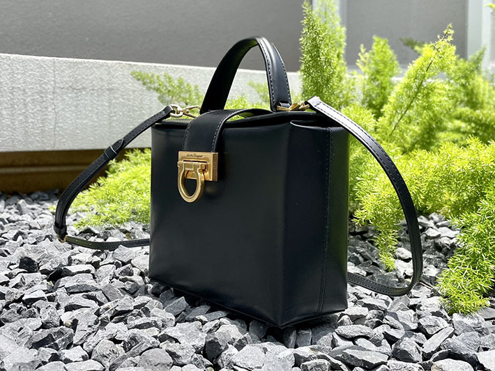 FERRAGAMO 新作バッグ フェラガモ バッグ アウトレット ハンドバッグ 2WAY TRIFOLIO BOX BAG ブラック 2520532 ferragamo ヴァラリボン バッグ