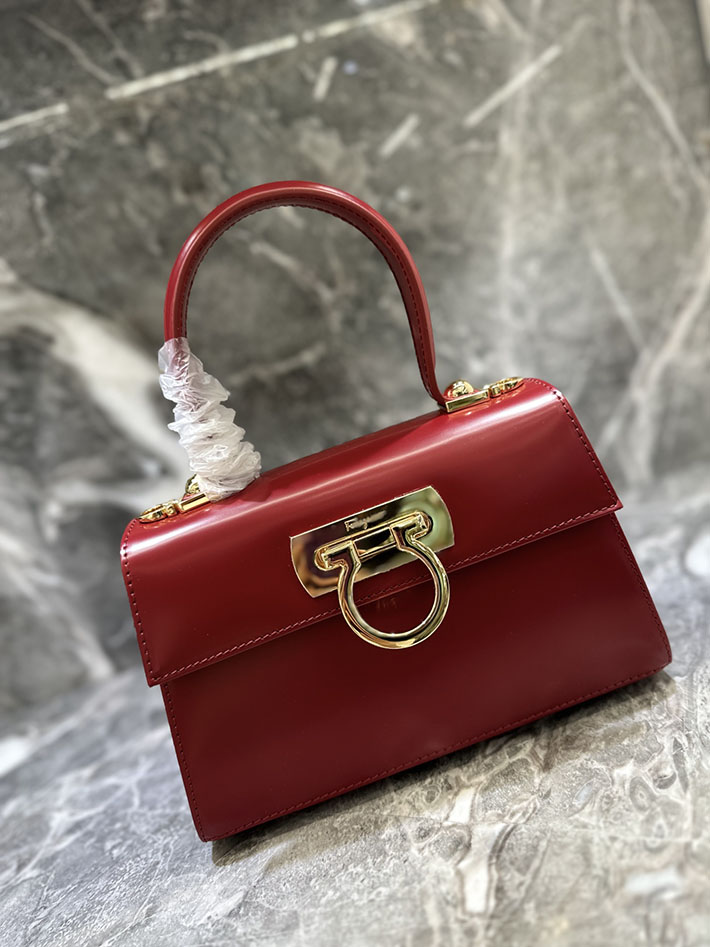FERRAGAMO 新作バッグ フェラガモ アイコニック トップハンドル ハンドバッグ 212958 レッド 2520545 FERRAGAMO バッグ 新作