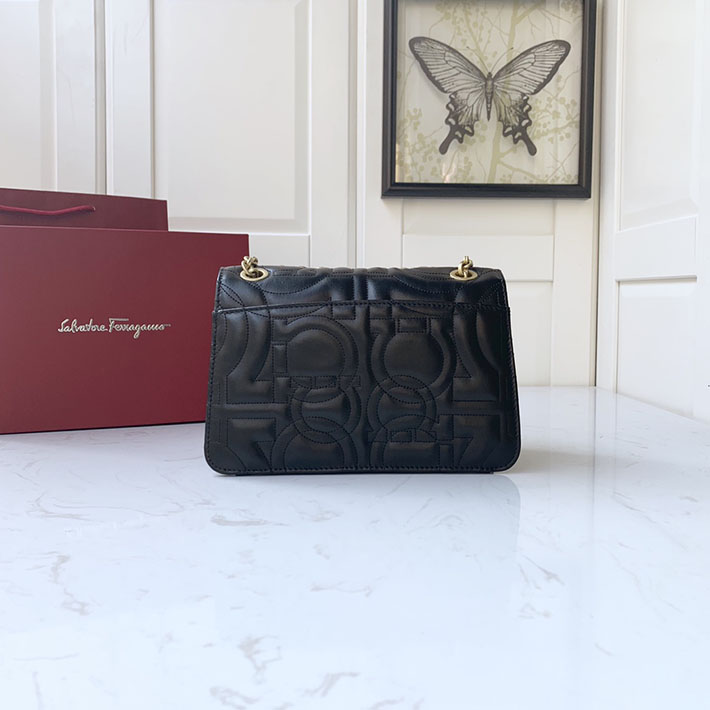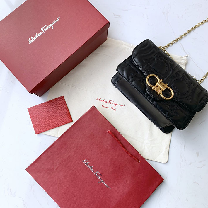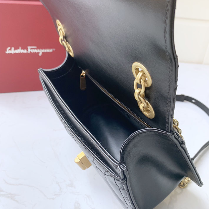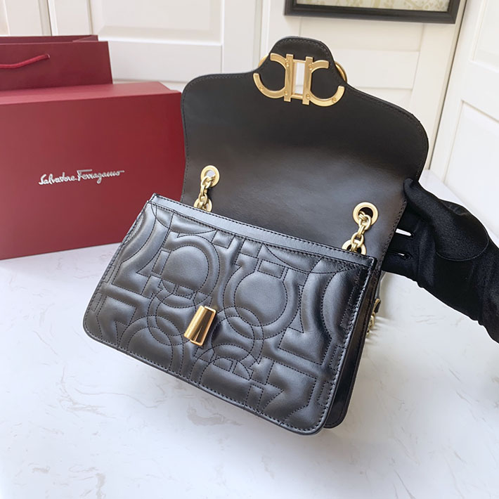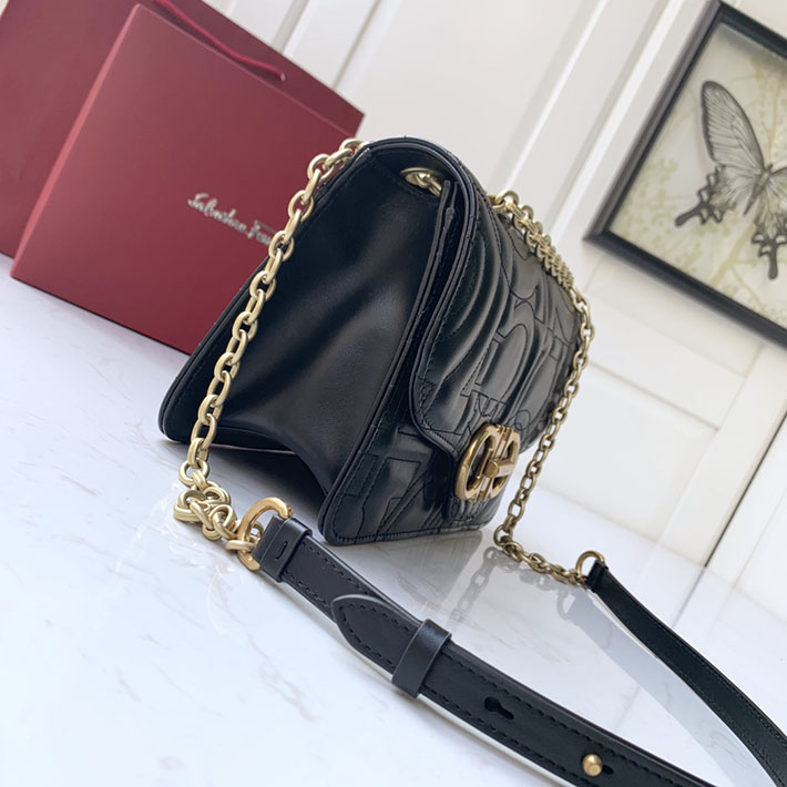 FERRAGAMO 新作バッグ フェラガモ ガンチーニ キルティング フラップ チェーンショルダーバッグ 21H168 ブラック 2520547 フェラガモ バッグ 人気