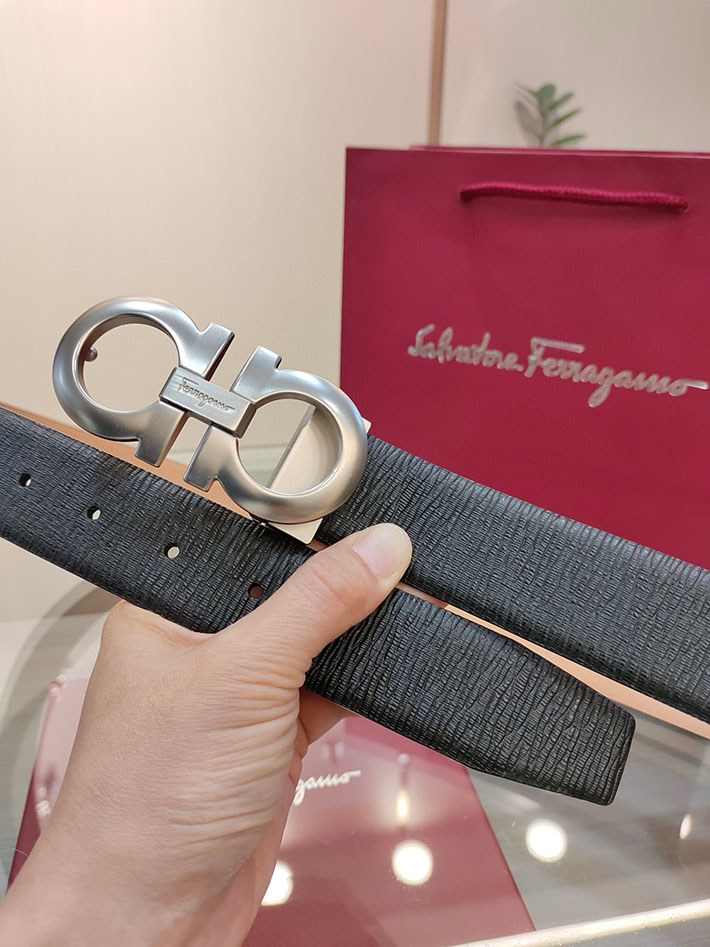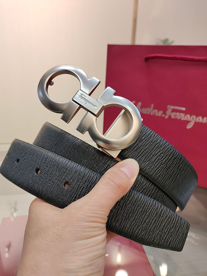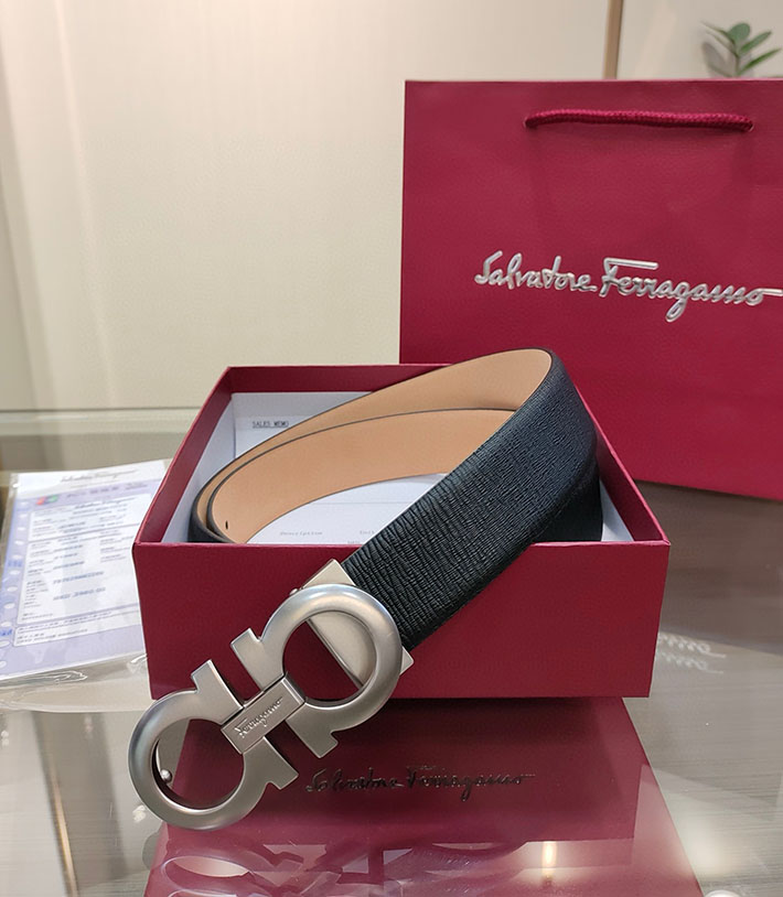 最高級フェラガモスーパーコピー フェラガモベルトコピー 本革ベルト メンズ ビジネス 2515286 ブラック シルバー金具
