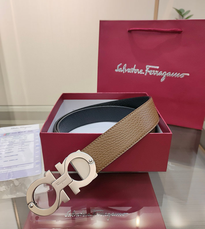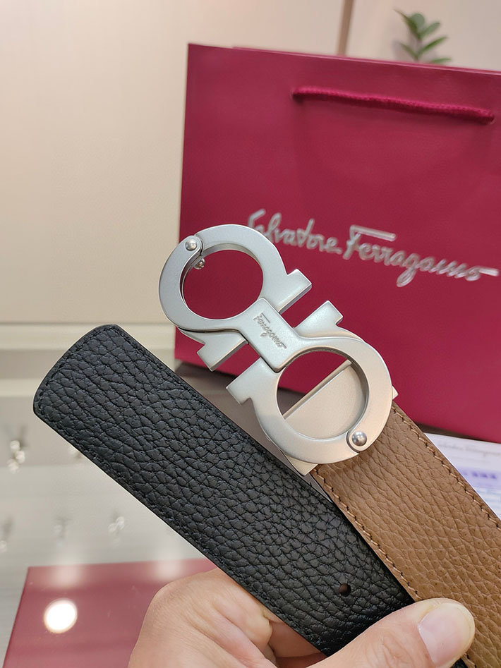 最高級フェラガモスーパーコピー フェラガモベルトコピー ベルト メンズ カジュアル 40代 2515711 ブラック/ブラウン シルバー金具