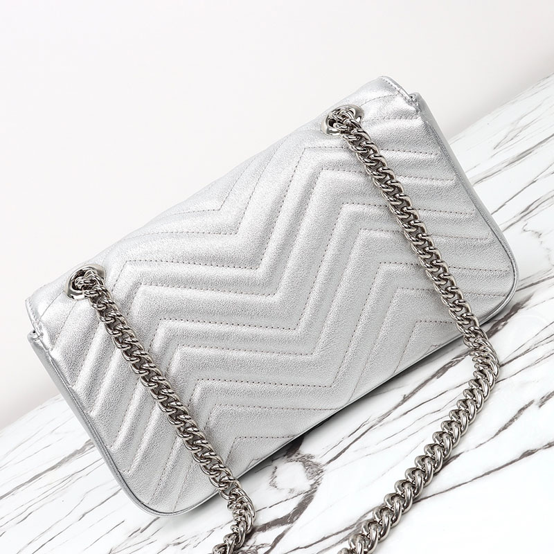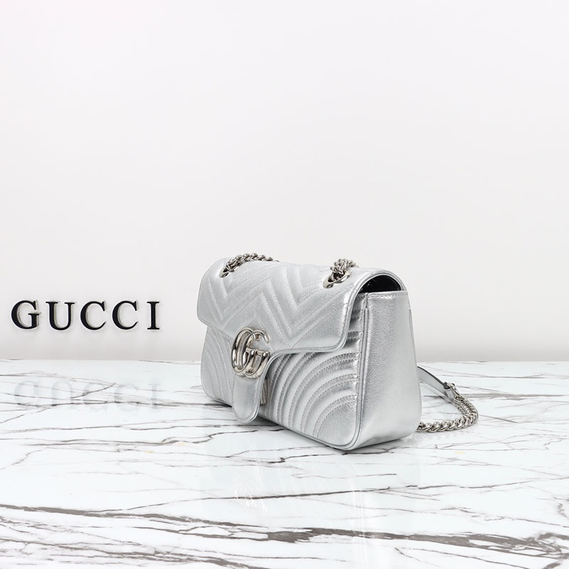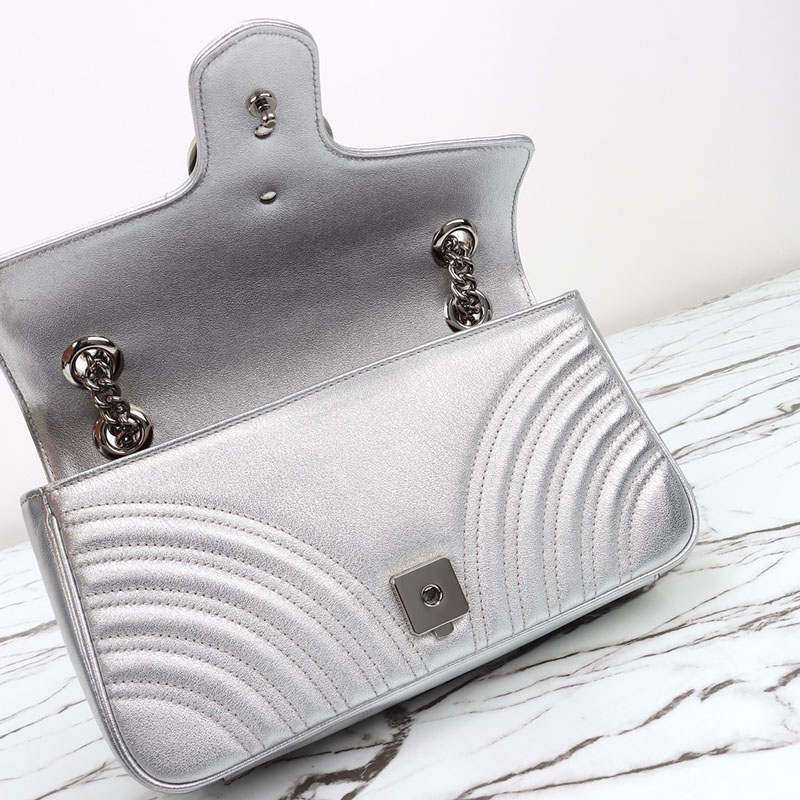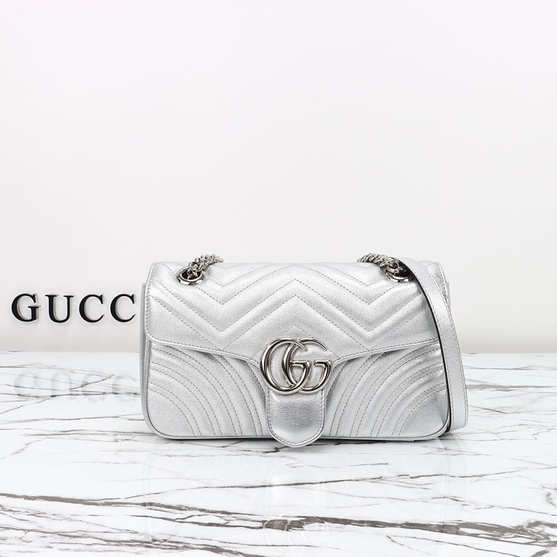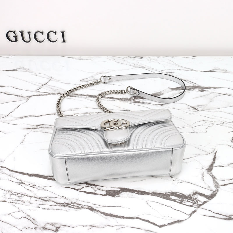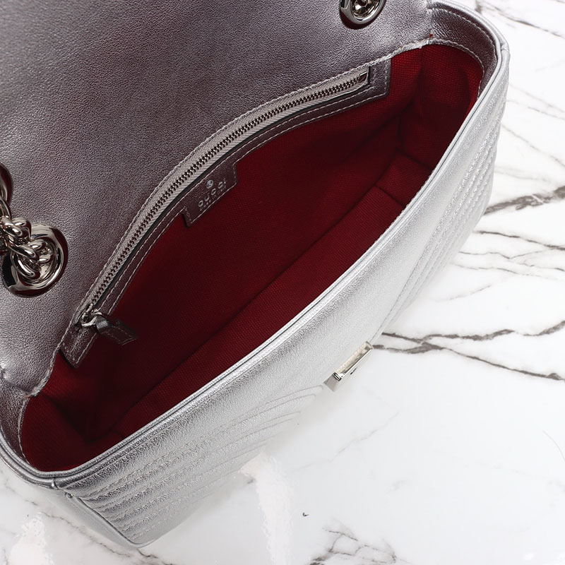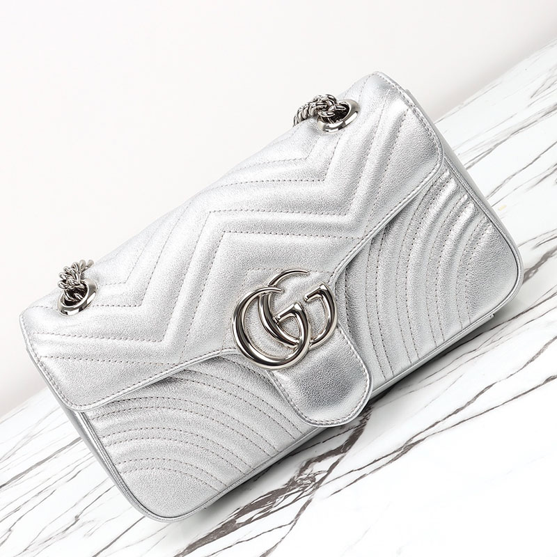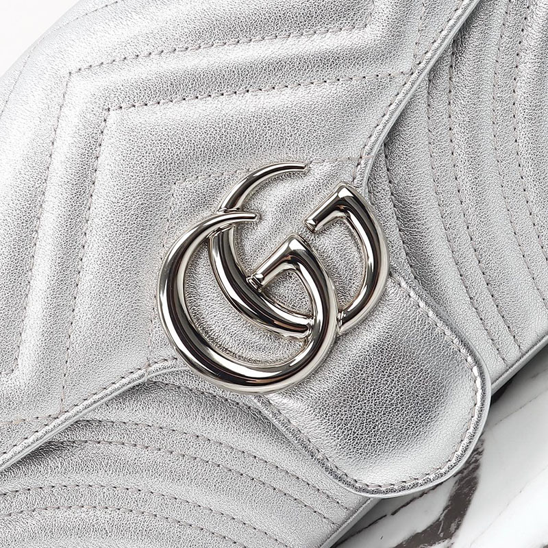 革ショルダーバッグレディースおすすめ グッチ GGマーモント スモール ショルダーバッグ 443497 AAER0 8106 シルバー