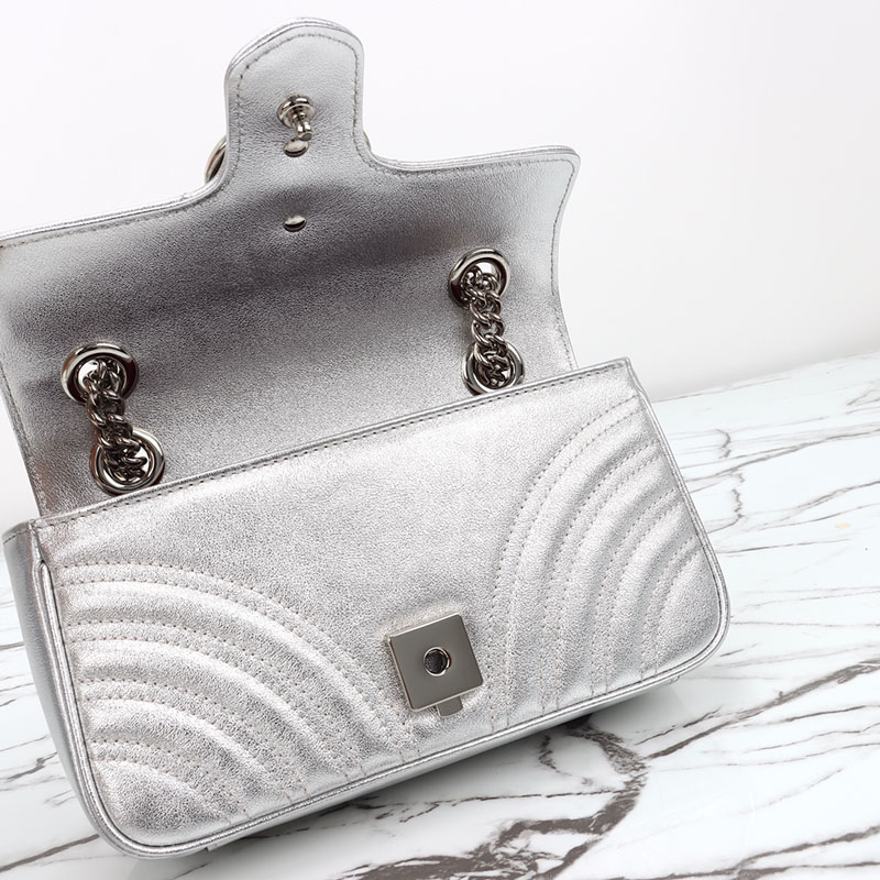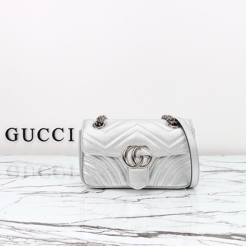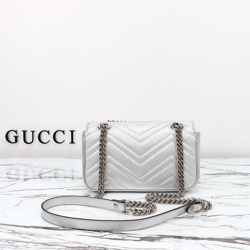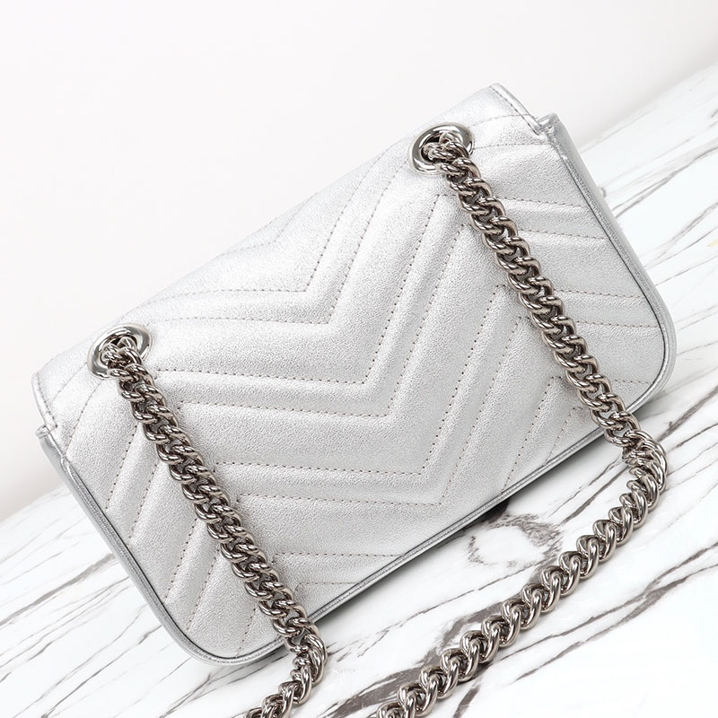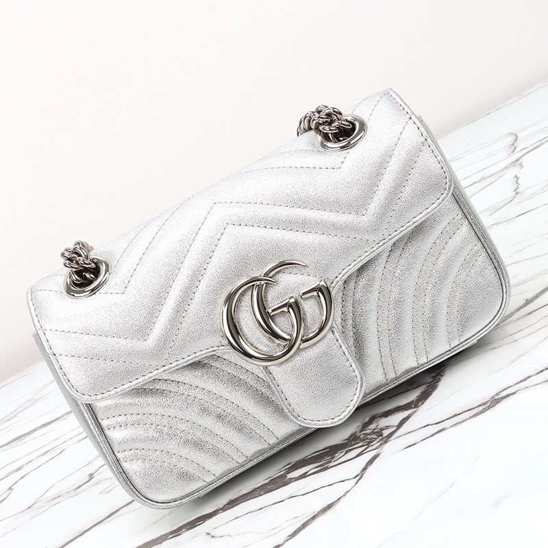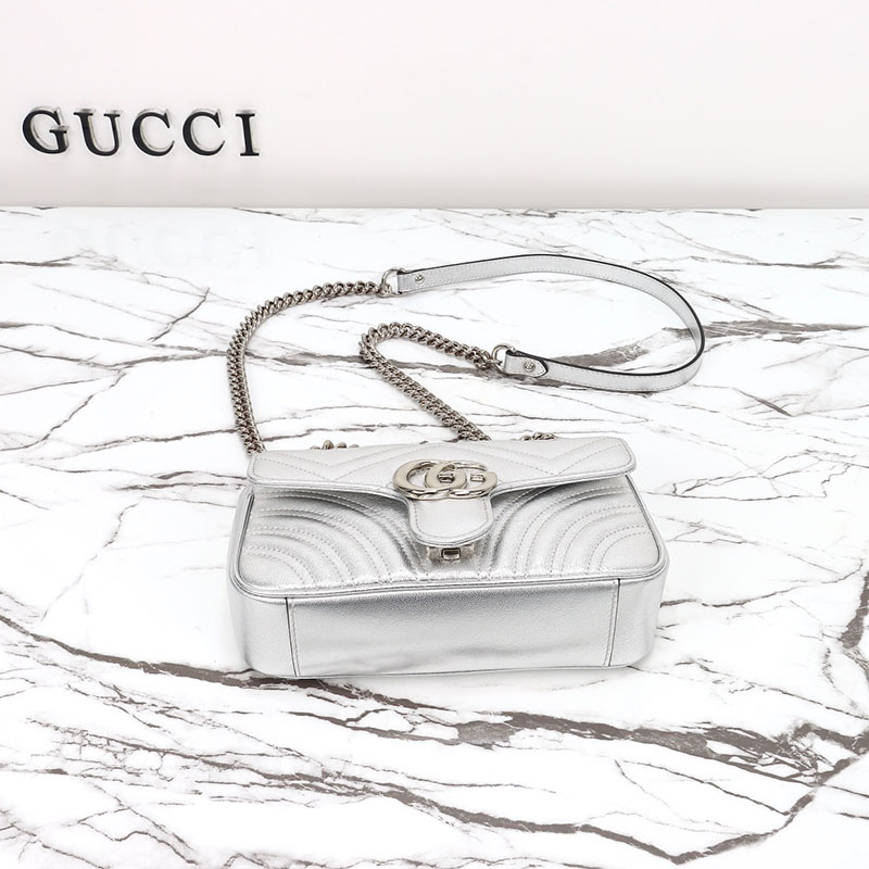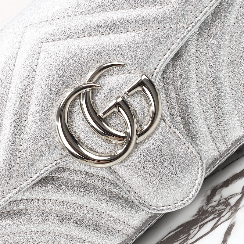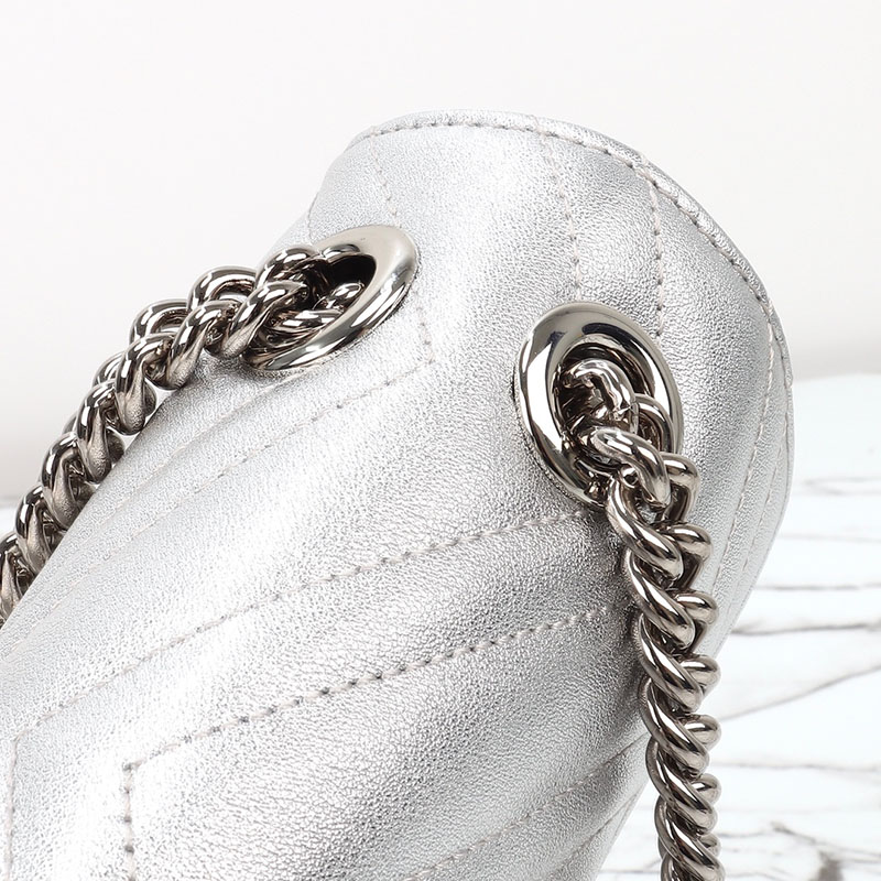 革ショルダーバッグレディースおすすめ グッチ GGマーモント ミニ ショルダーバッグ 446744 AADPJ 8106 シルバー