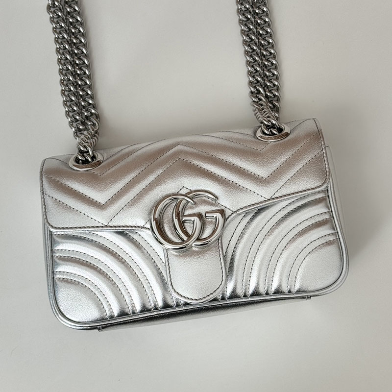 グッチ GGマーモント ミニ ショルダーバッグ 446744 AAESN 8106 シルバー シルバー金具 グッチ マーモント 口コミ