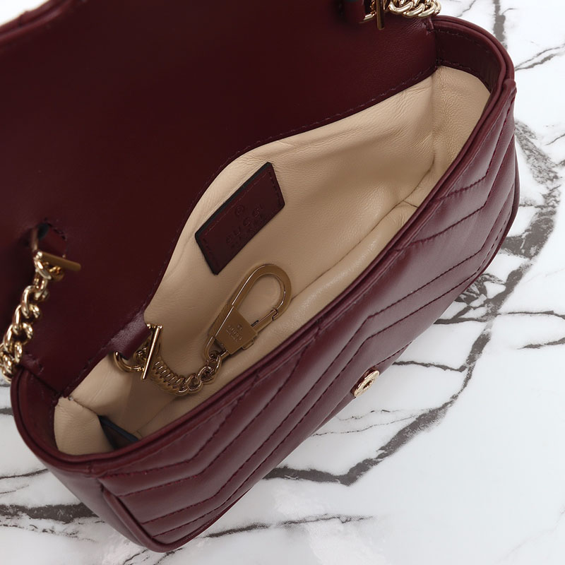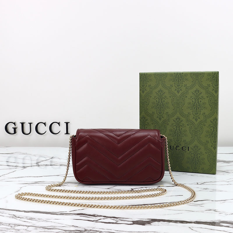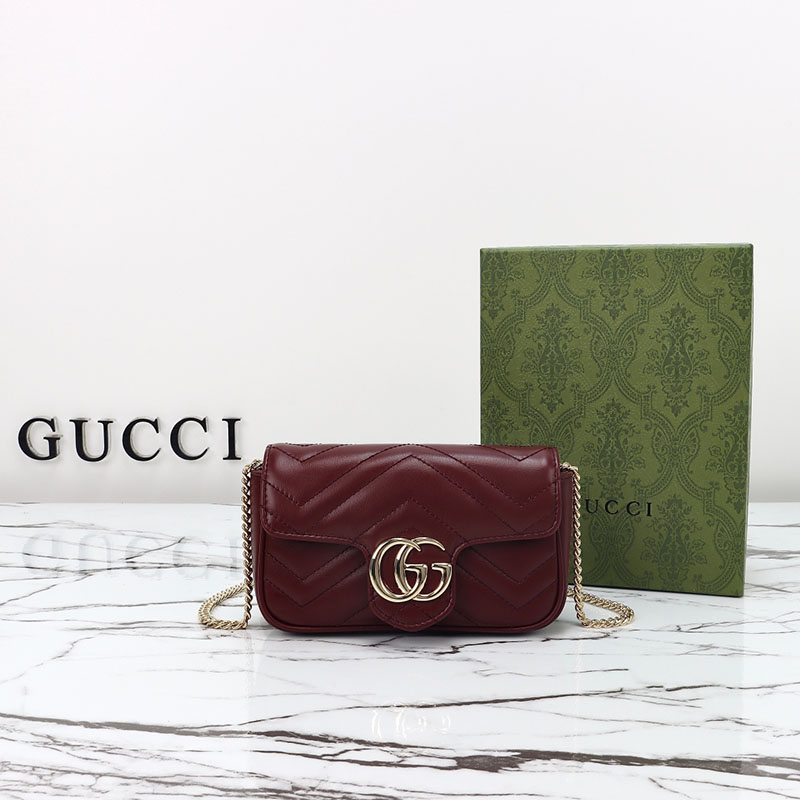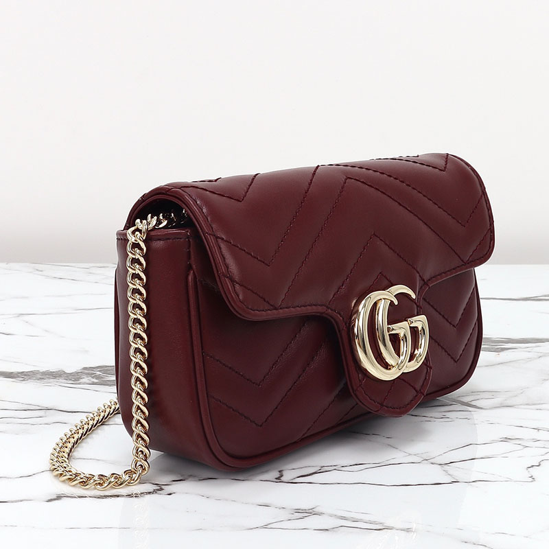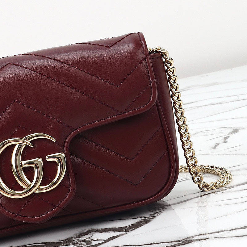 革ショルダーバッグレディースおすすめ グッチ GGマーモント スーパーミニバッグ 476433 DTDHV 6207 深い赤
