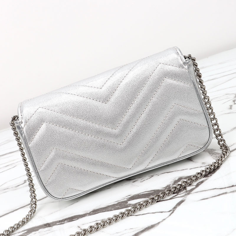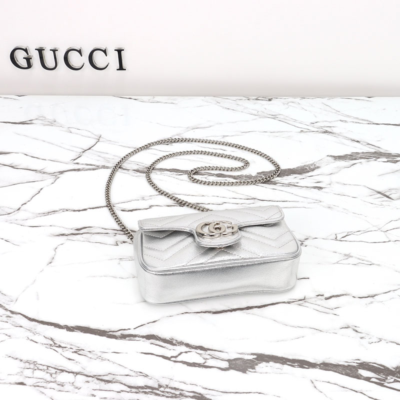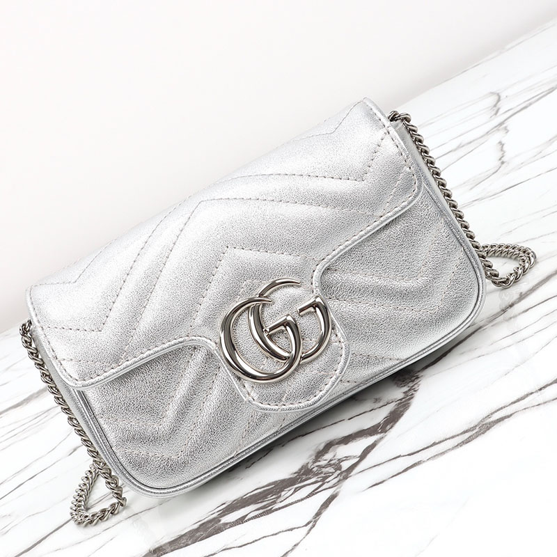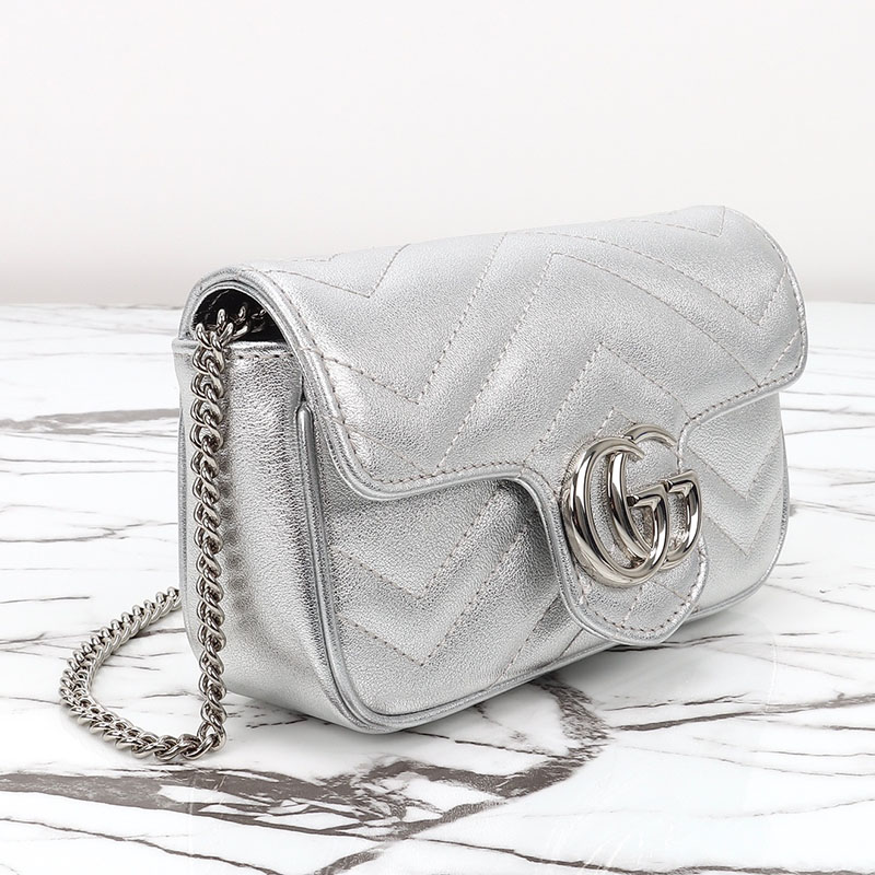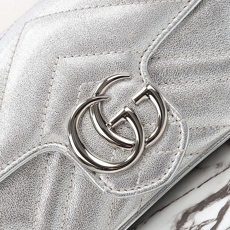 革ショルダーバッグレディースおすすめ グッチ GGマーモント スーパーミニバッグ 476433 DTDHV 8106 シルバー