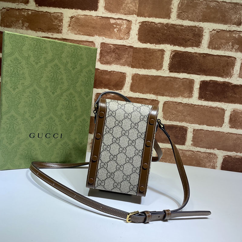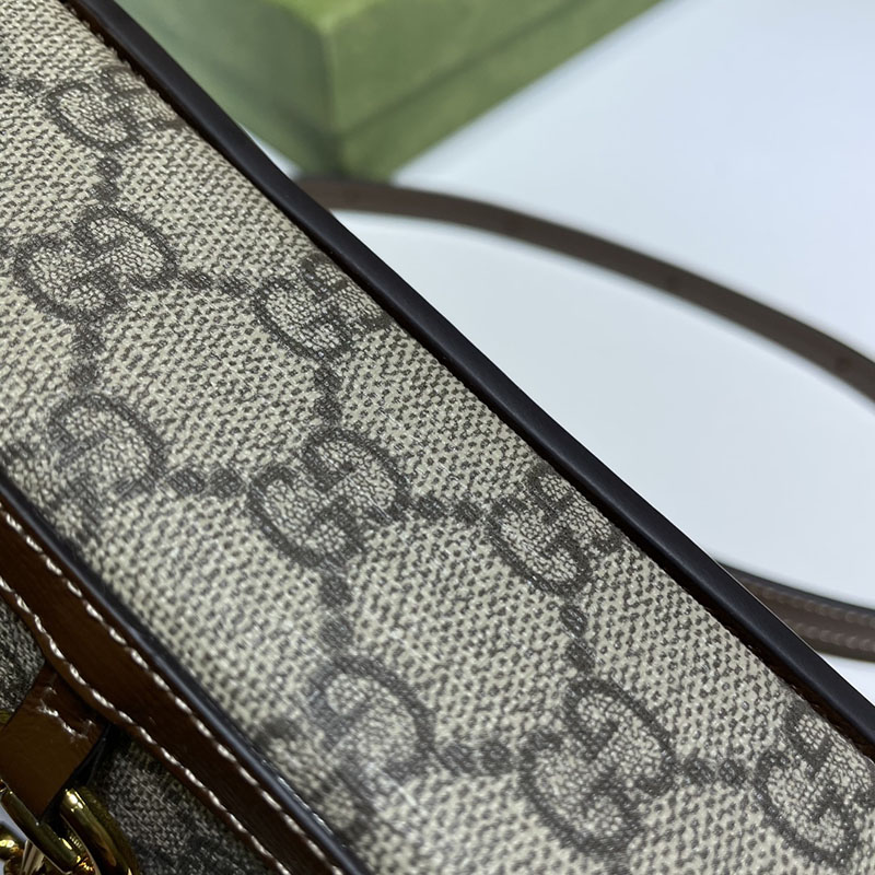 スクエアフォルムの〔グッチ ホースビット 1955〕ミニバッグがGGスプリーム キャンバスで登場。ダブルリングとバーから成るホースビットはブランドのルーツを物語るモチーフで、乗馬の世界から取り入れたグッチのシンボルの中でも最も代表的なエレメントのひとつとなっています。自己表現を尊重するグッチのスピリットを共有する人にふさわしい、さまざまな合わせ方でスタイルを演出できるアイテムです。