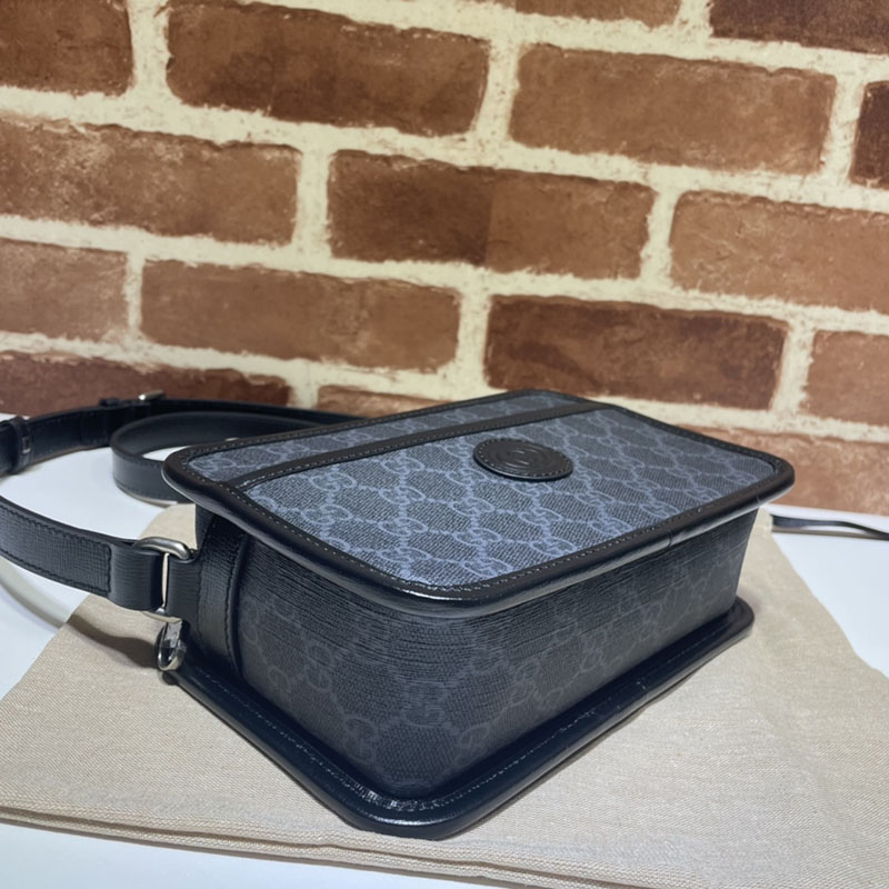 グッチ バッグ 新作 GUCCI インターロッキングG付き ミニバッグ 斜め掛けショルダーバッグ 658572 92TCG 1095 ブラック/グレー メンズバッグ 流行り