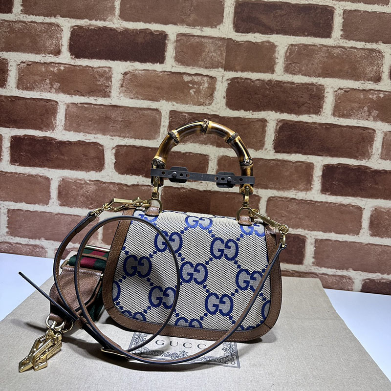 グッチ バッグ 未使用品 GUCCI バンブー 1947 スモール トップハンドルバッグ 675797 21HRG 8375 ブルー&ブラウン ハイ ブランド 一覧