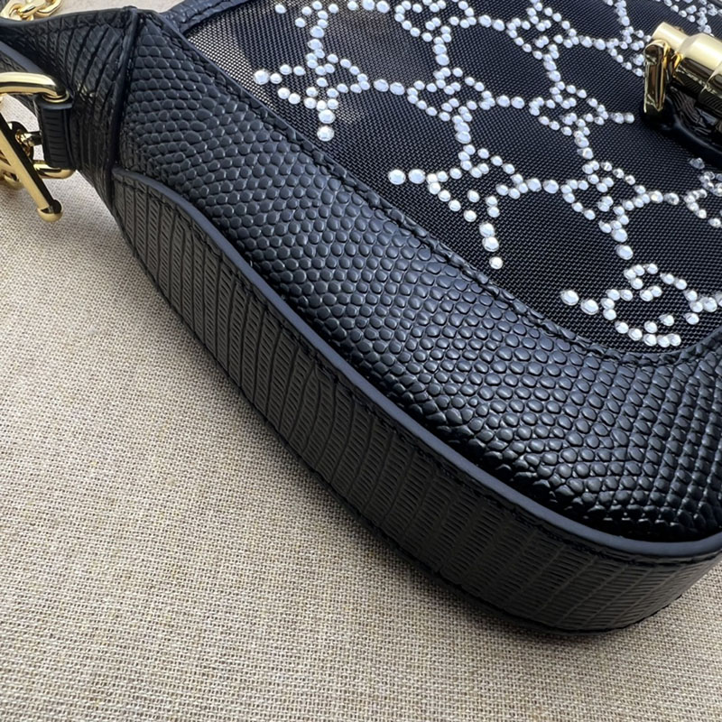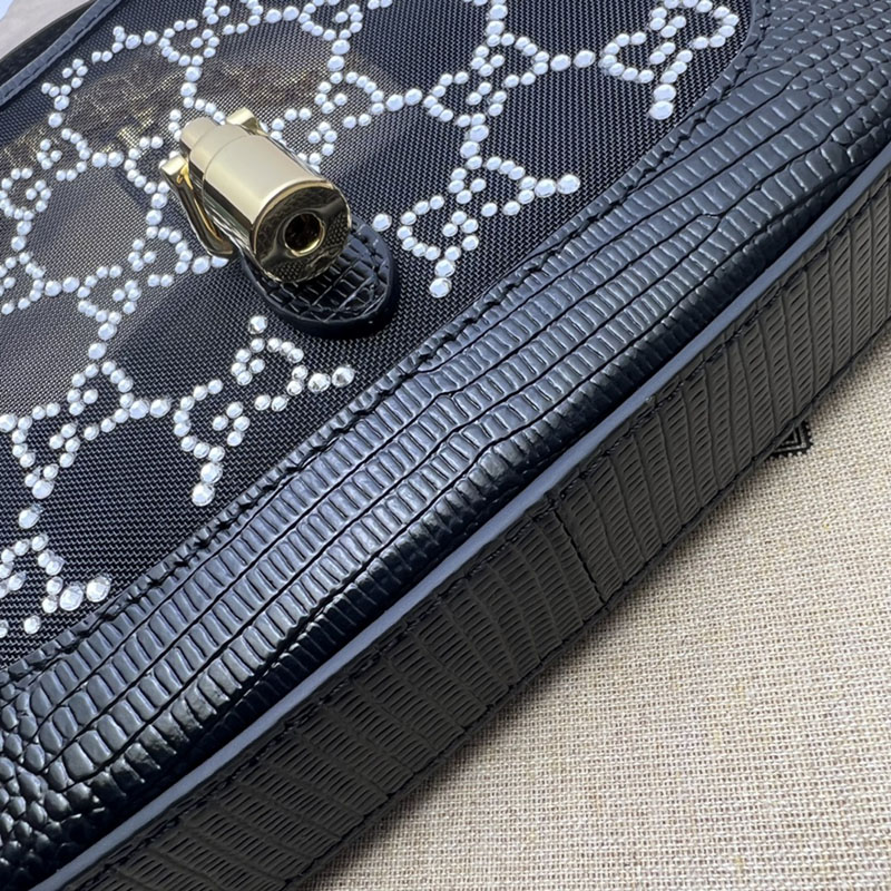 グッチ バッグ 新作 GUCCI JACKIE 1961 ミニバッグ GG クリスタル 677027 F13HG 1083 ブラック ブランドバッグ 人気ランキング