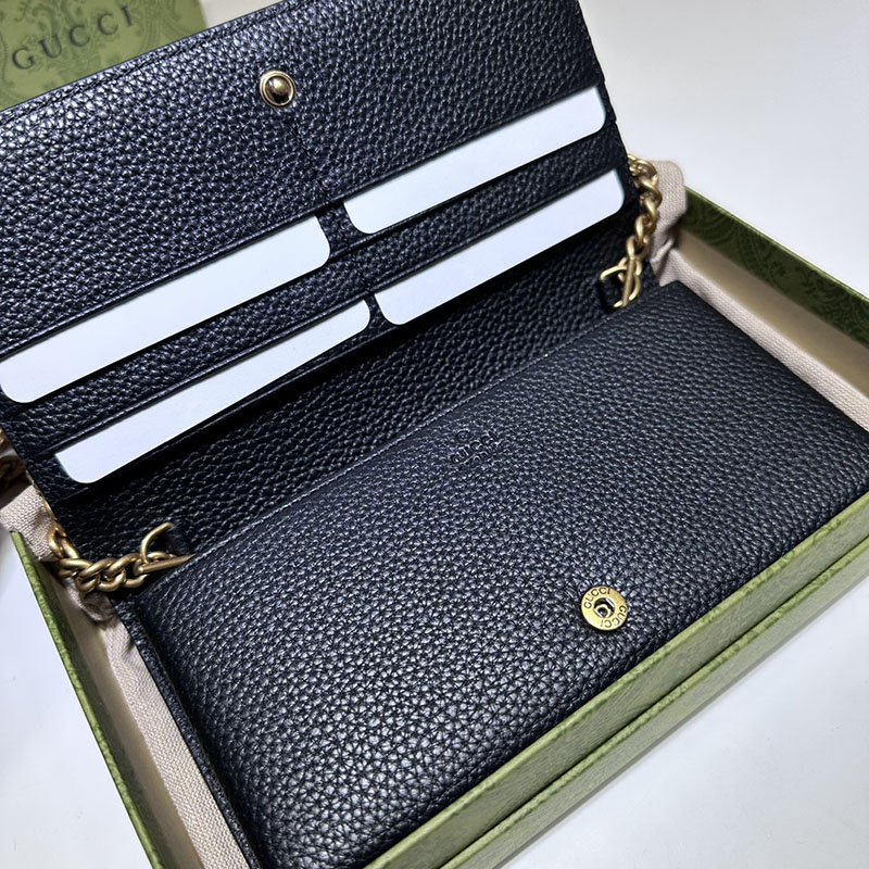 グッチ チェーン ウォレットショルダー 斜め掛け 746056 AACA0 1000 ブラック ゴールド金具 グッチ チェーンウォレット 新作