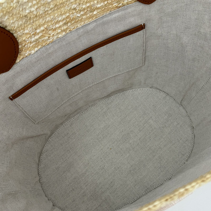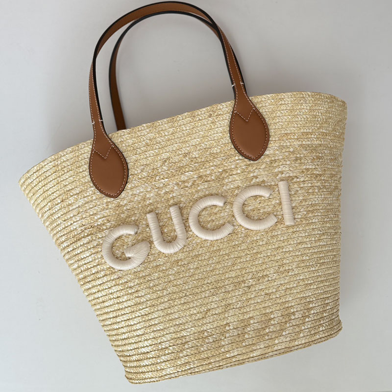 このアイテムは、夏のスピリットとイタリアのビーチクラブに着想を得た Gucci Lido(グッチ リド)コレクションのひとつです。ストローを使ったグッチのアクセサリーは、伝統素材に鮮やかなカラーや象徴的なモチーフを用いて新たな光を投げかけています。このトートバッグでは、ナチュラルカラーの本体にブラウンのレザー ストラップを組み合わせました。GUCCI ロゴをストロー パッチであしらい、陽射しが降り注ぐ季節に映えるアイテムに仕上げています。