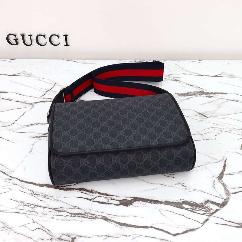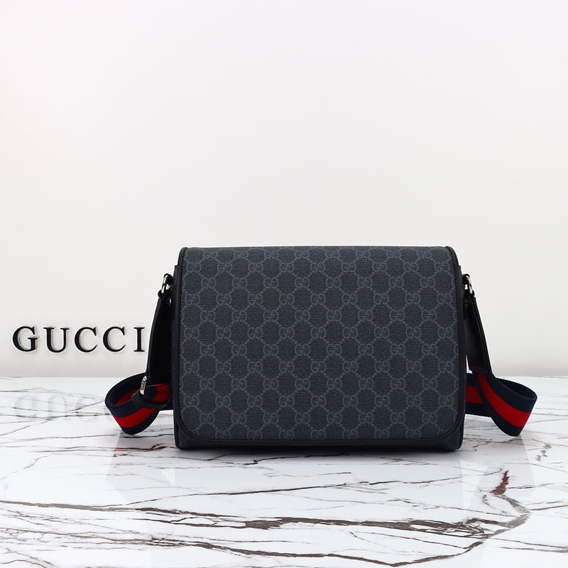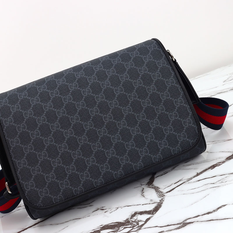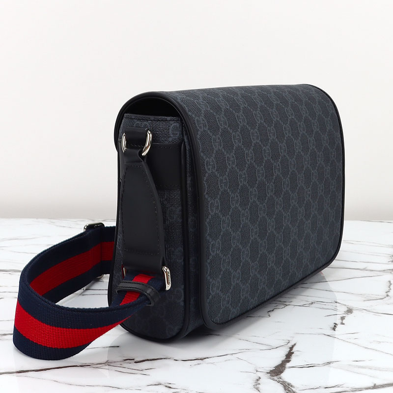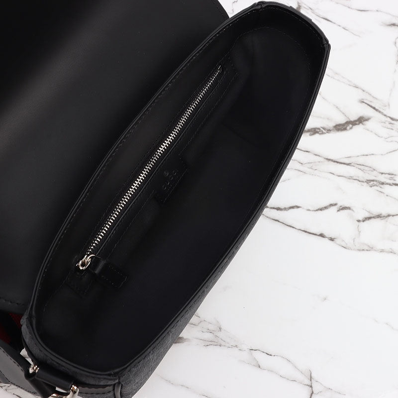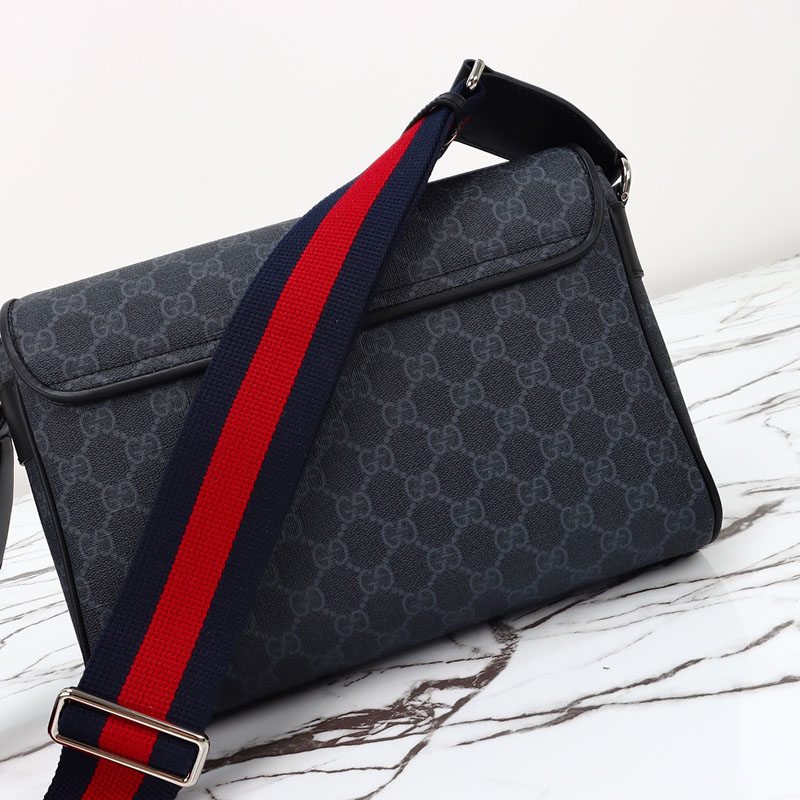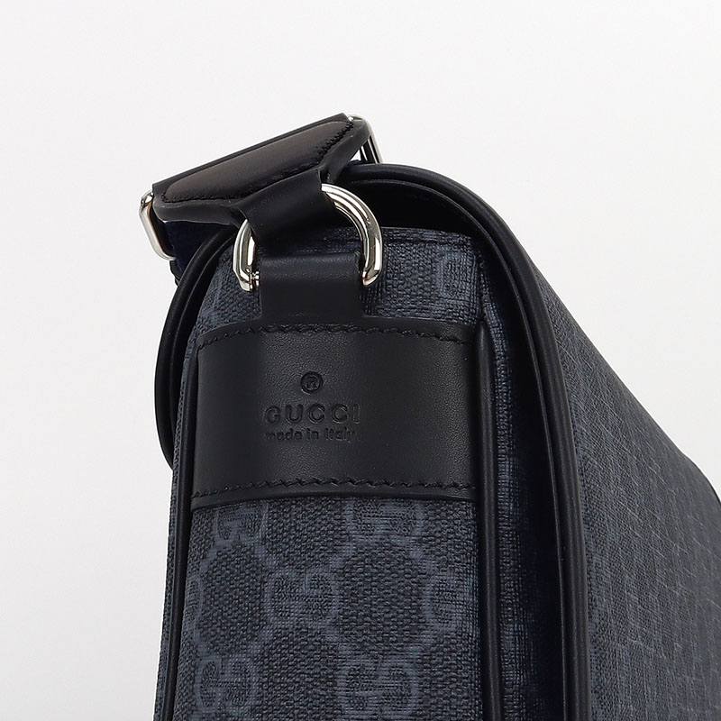 ソフトでしなやかなGGスプリーム キャンバスは、グッチを象徴する永遠のシグネチャー。このクロスボディバッグは、コーティングを施したオールブラックのマイクロファイバー素材で仕立てました。同系色のレザー トリムをあしらい、アーカイブから引用したウェブ ストライプで彩りを添えています。