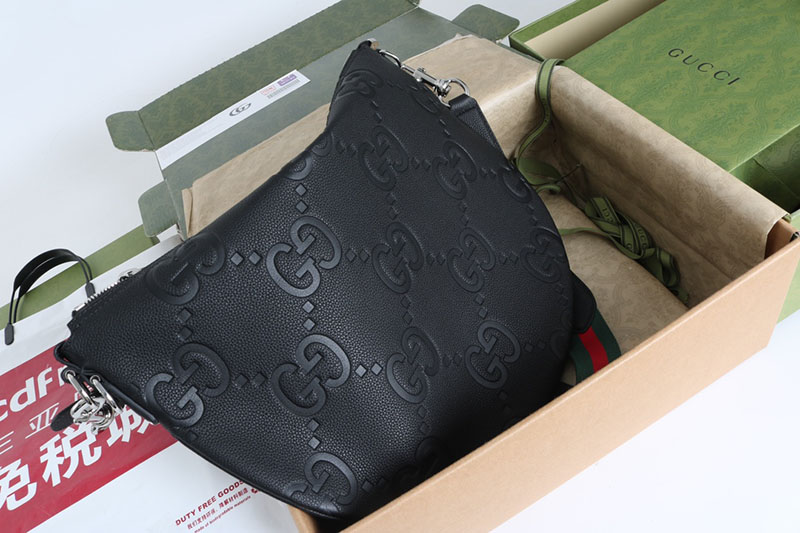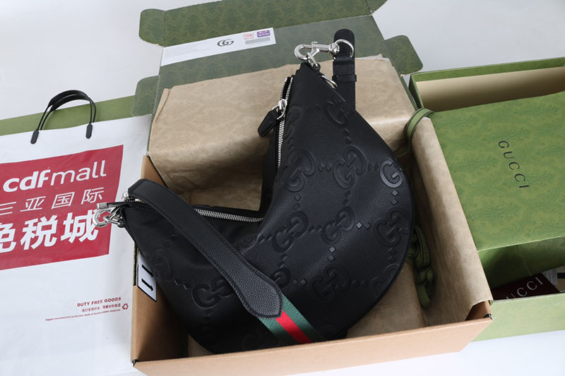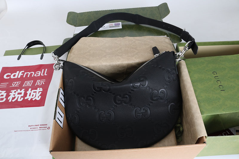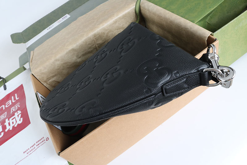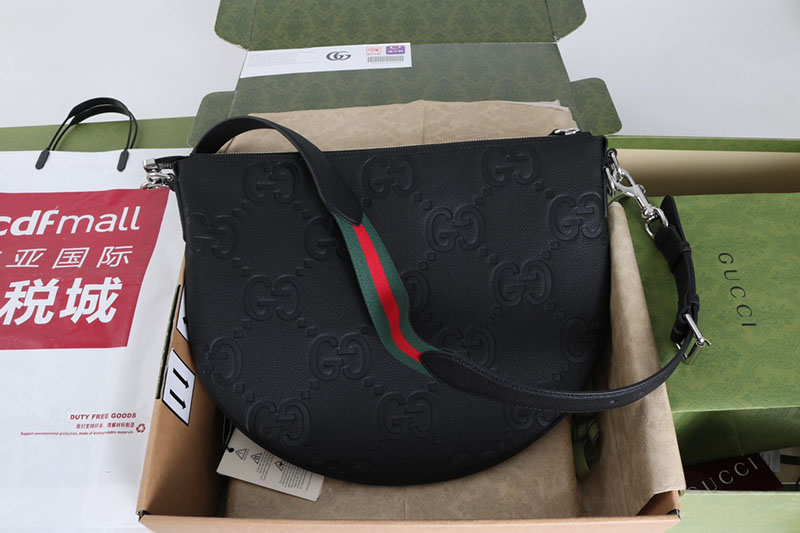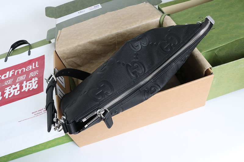 最新コレクションに登場した〔グッチB〕バッグは、その名の由来であるアーカイブデザインを、ボディ全体にドレープを描くリラックス感のあるシルエットに再解釈した一品。ここではソフトなシボ感のあるブラックの象徴的なジャンボ GGレザーを使用しています。ショルダーストラップは長さ調節が可能で、Dリングで取り外しできます。