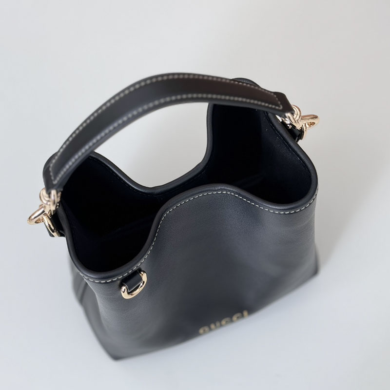 グッチのエレガンスとクラフツマンシップの歴史を新たな視点で解釈した最新ライン〔GGエンブレム〕。このミニサイズのバケット バッグは、内側にコンパートメントを配し、機能的なデザインに仕上げています。