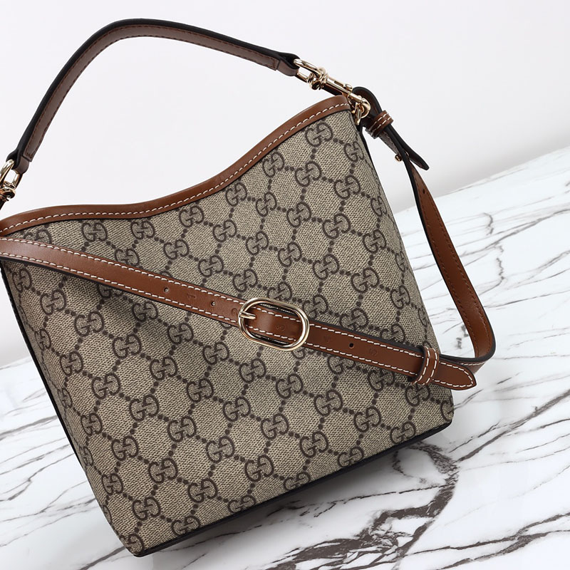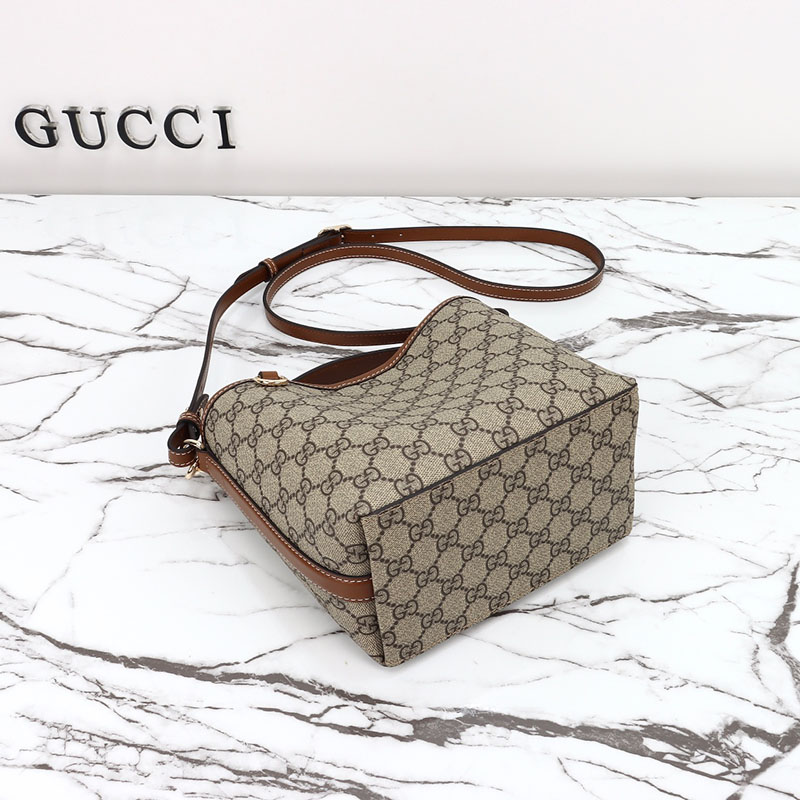 バケットバッグ ショルダー グッチ GGエンブレム ミニ バケットバッグ 815118 FAD6L 9758 ベージュ&ダークブラウン ゴールド金具