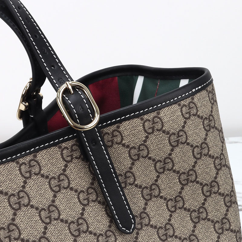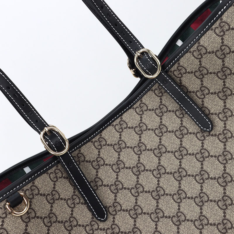グッチのエレガンスとクラフツマンシップの歴史を新たな視点で解釈した最新ライン〔GGエンブレム〕このミディアムサイズのトートバッグは、調節可能なトップハンドルにあしらった、乗馬の世界にインスピレーションを得た番号入りのノッチがポイントになっています。