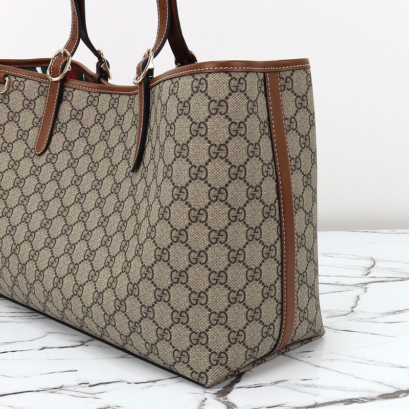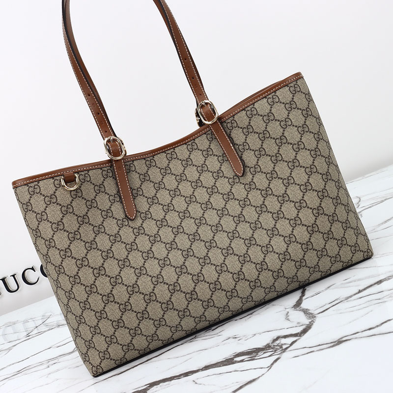 グッチ トートバッグ 新作 2025 グッチ GGエンブレム ミディアム トートバッグ 815213 FAD6L 9758 ベージュ&ダークブラウン