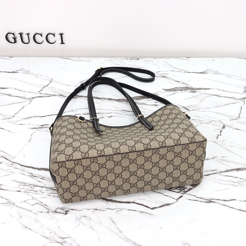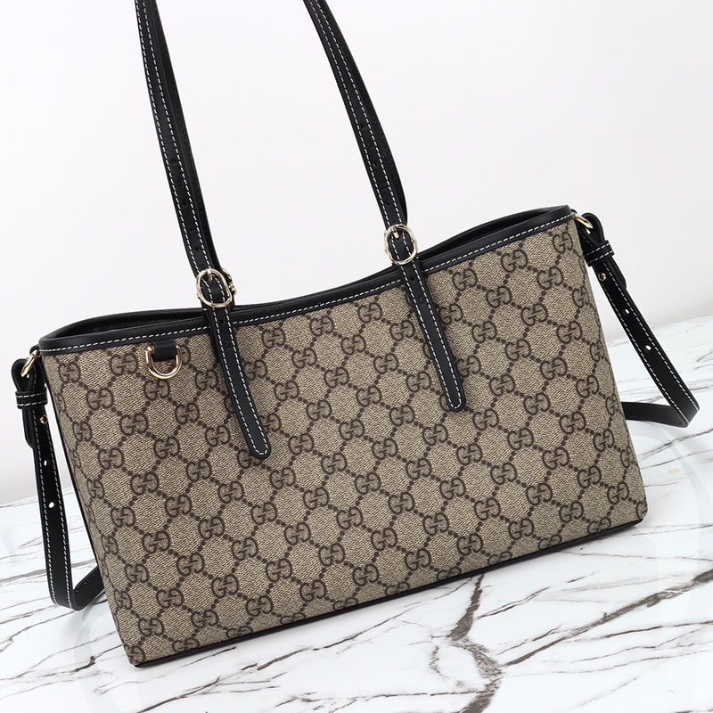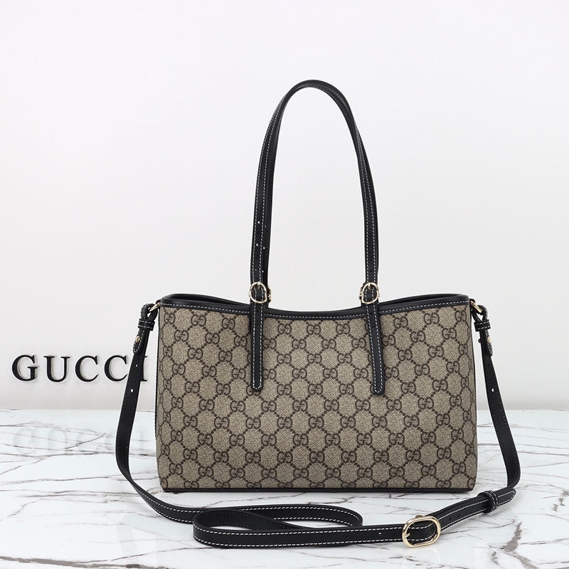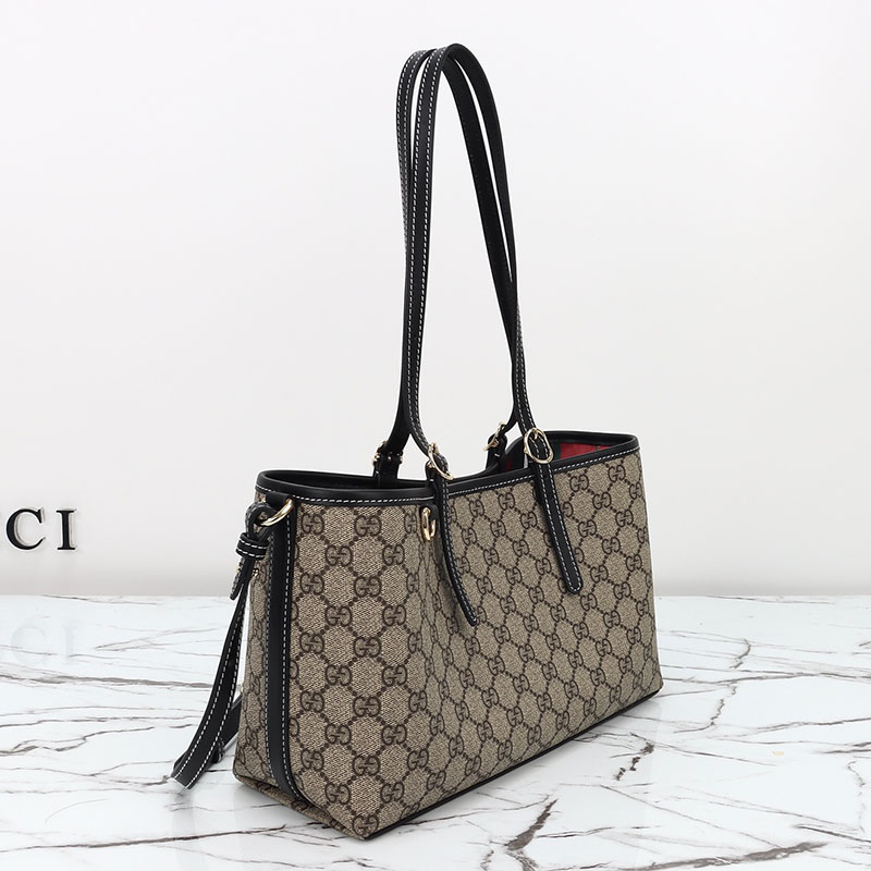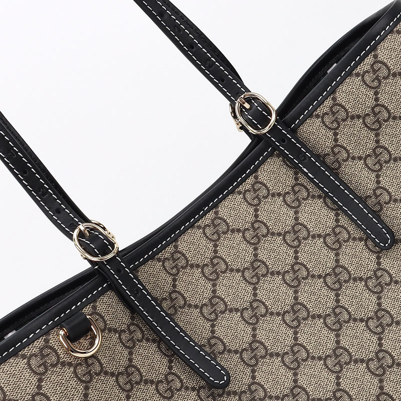 グッチのエレガンスとクラフツマンシップの歴史を新たな視点で解釈した最新ライン〔GGエンブレム〕このスモールサイズのトートバッグは、調節可能なトップハンドルにあしらった、乗馬の世界にインスピレーションを得た番号入りのノッチがポイントになっています。