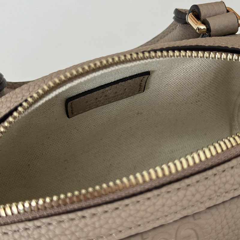 グッチのエレガンスとクラフツマンシップの歴史を新たな視点で解釈した最新ライン〔GGエンブレム〕このスモールサイズのトップハンドルバッグは、出し入れしやすいダブルジッパー式。ライトゴールドトーンのチェーンとクロスボディでスタイリングできるレザー ショルダーストラップを備えています。