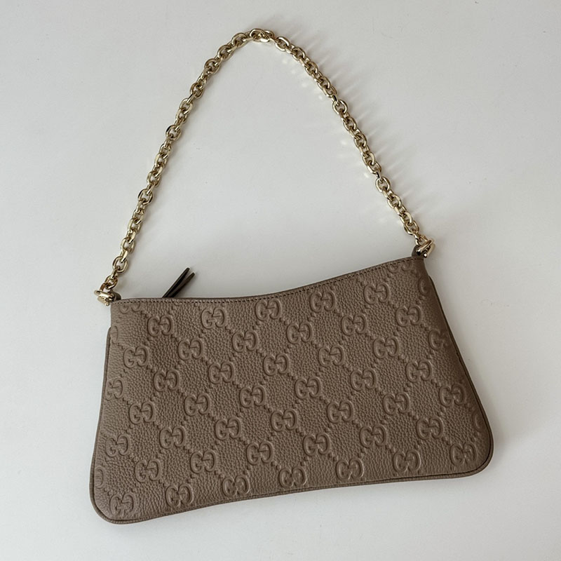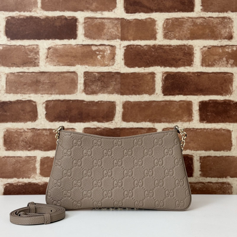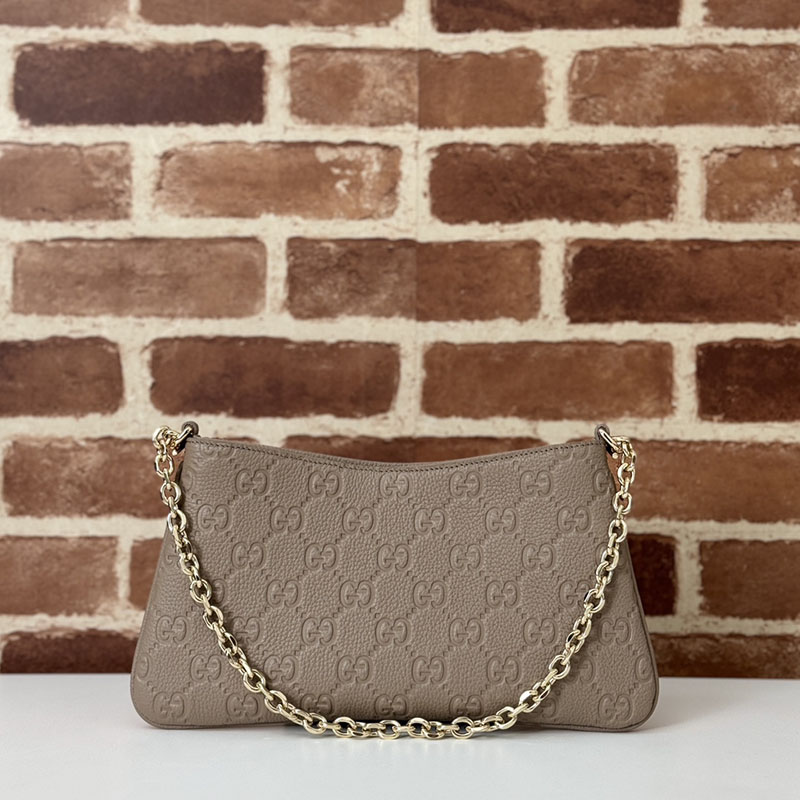 グッチのエレガンスとクラフツマンシップの歴史を新たな視点で解釈した最新ライン〔GGエンブレム〕このミディアムサイズのショルダーバッグは、GGグレインレザーで仕立て、チェーン ストラップと取り外し可能なレザー ショルダーストラップを備えています。