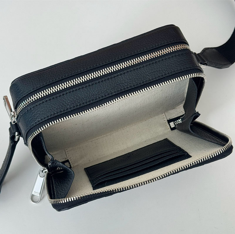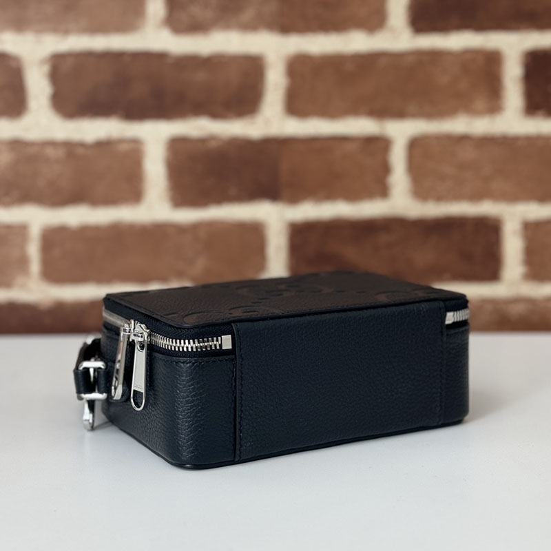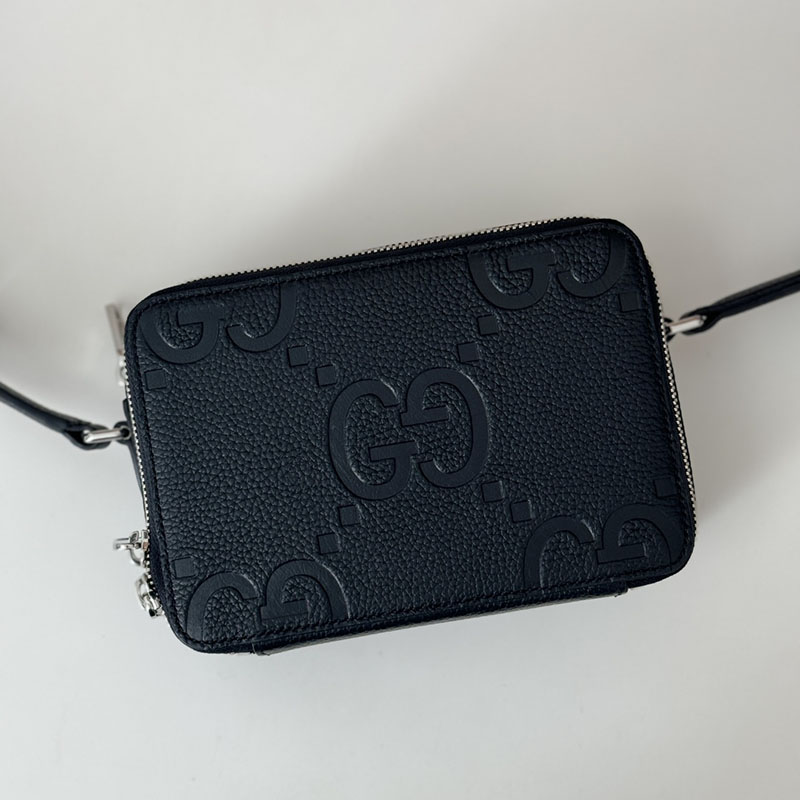 歴史あるGGパターンを施すことで、普段使いのスモールアクセサリーがコンテンポラリーな必携アイテムに。グッチの最新コレクションの随所でも目を惹いた新しいテクスチャーや仕上げが、ダイナミックで個性豊かな雰囲気を醸し出しています。ブラックのグレインレザーで仕立てたこのスーパーミニバッグは、全体にマキシバージョンのロゴをあしらいました。