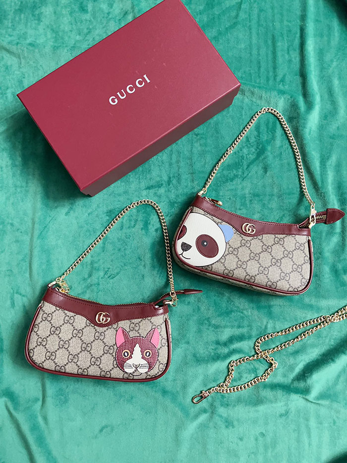 グッチ パンダ ディテール GG ミニバッグ 818763 FAEEO 8574 ベージュ&マルチカラー ゴールド金具 手提げバッグ 小さめおしゃれ