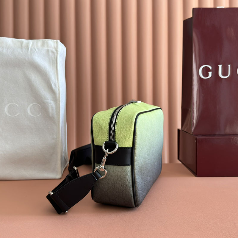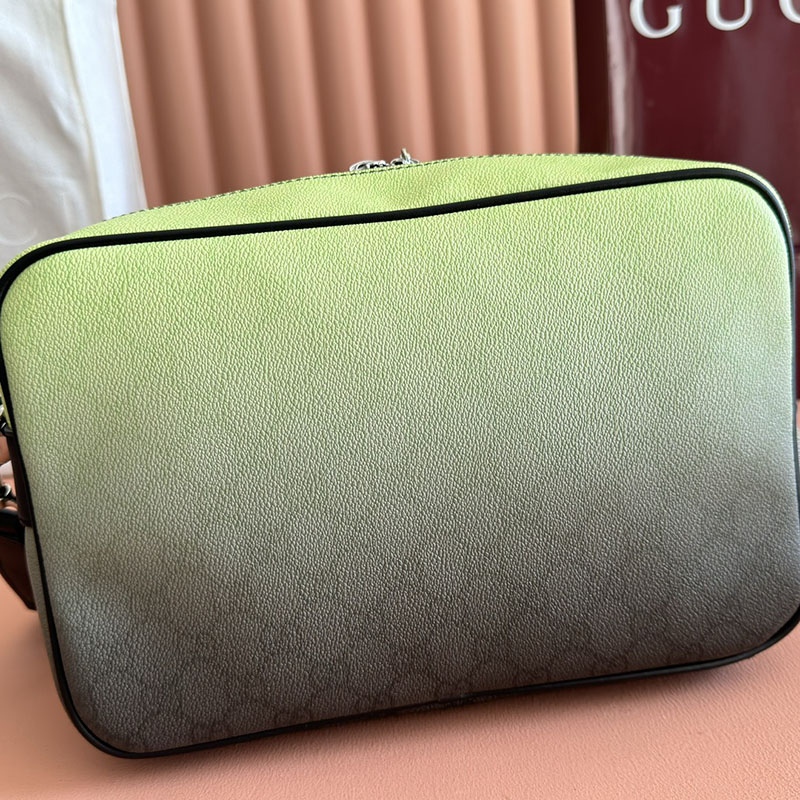 定番スタイルに新たな表情をもたらす、爽やかなブルーのグラデーション エフェクト プリント。このミディアムサイズのクロスボディバッグはGGパターン コーティング ファブリックで仕立て、全体にグラデーション プリントを施しています。