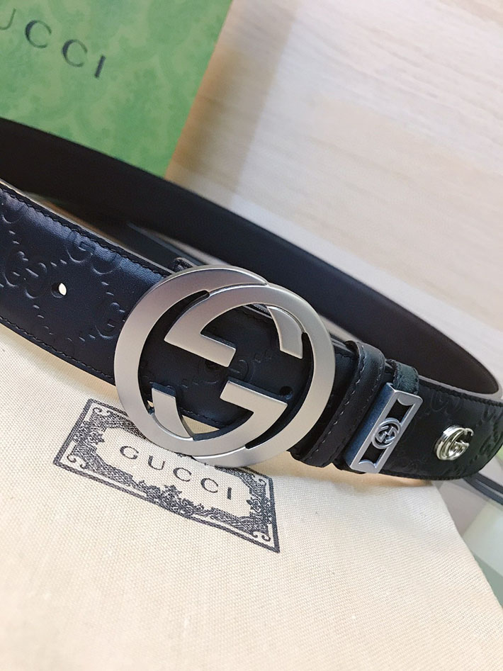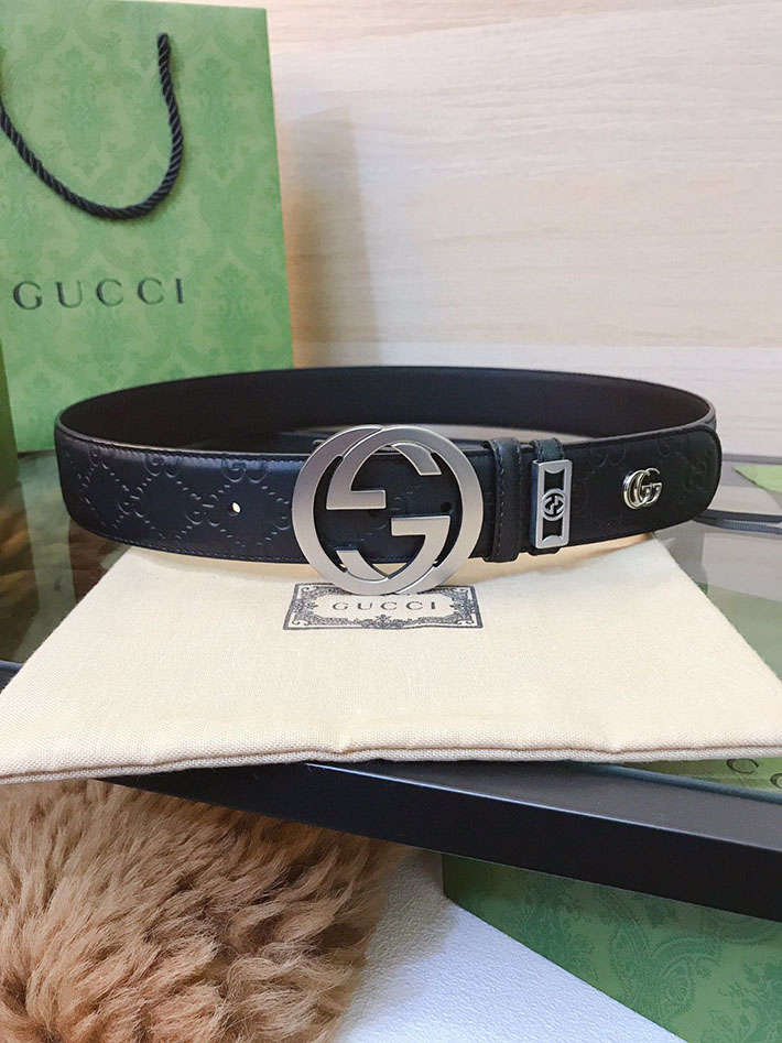 グッチ ベルト 2024新作 Gucci グッチ ベルト メンズ アウトレット 2515296 ブラック レザー シルバー金具