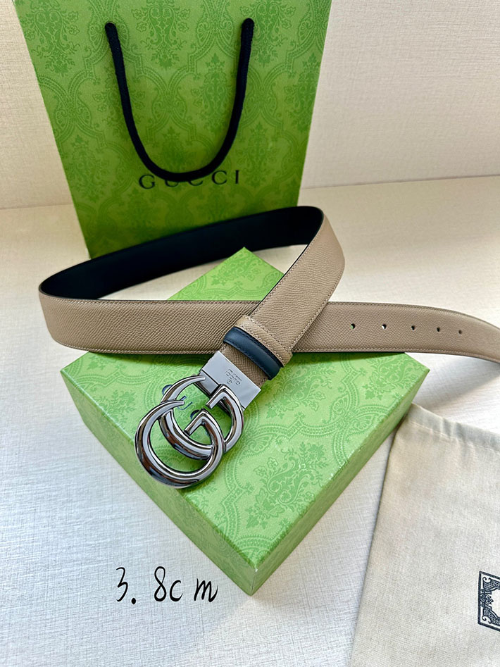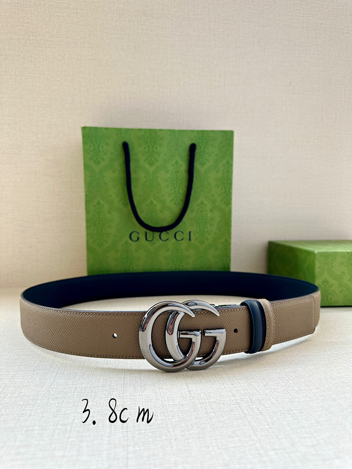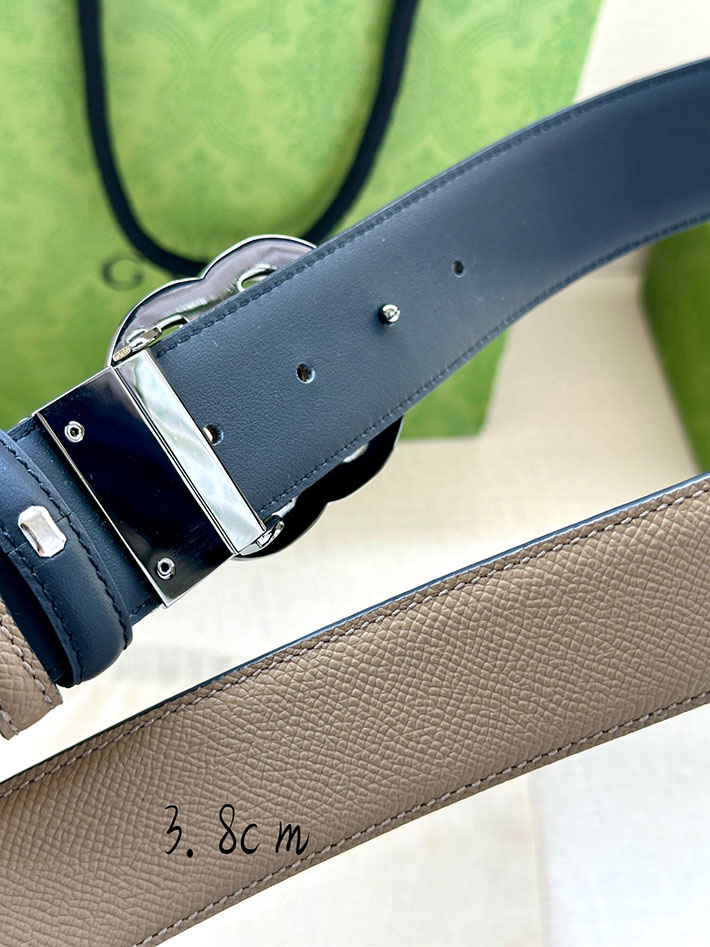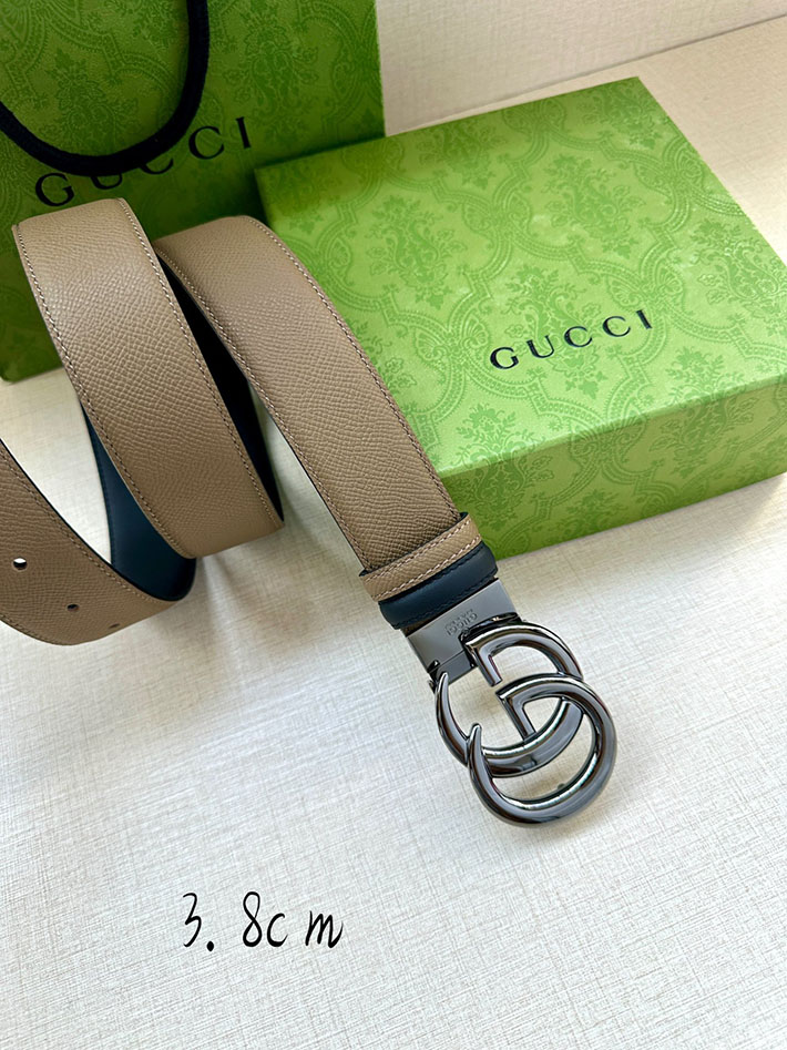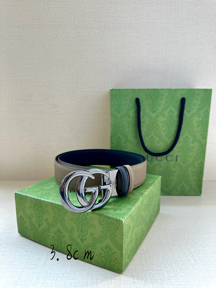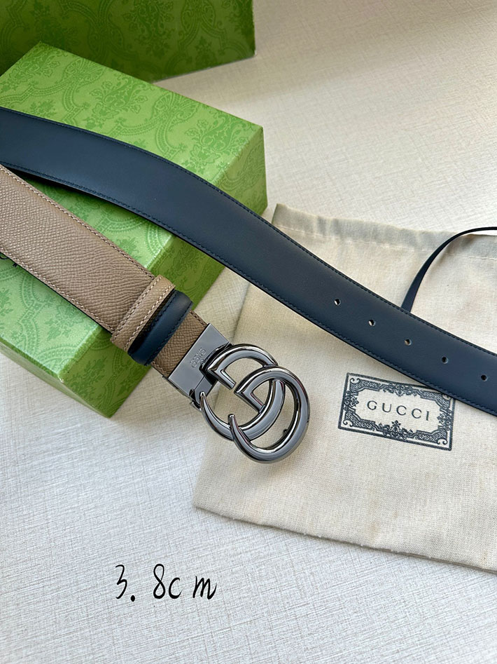 グッチ ベルト 2025年新作 Gucci グッチ ベルト メンズ 人気 2515813 グレー/ネイビー 本革 ブラック金具
