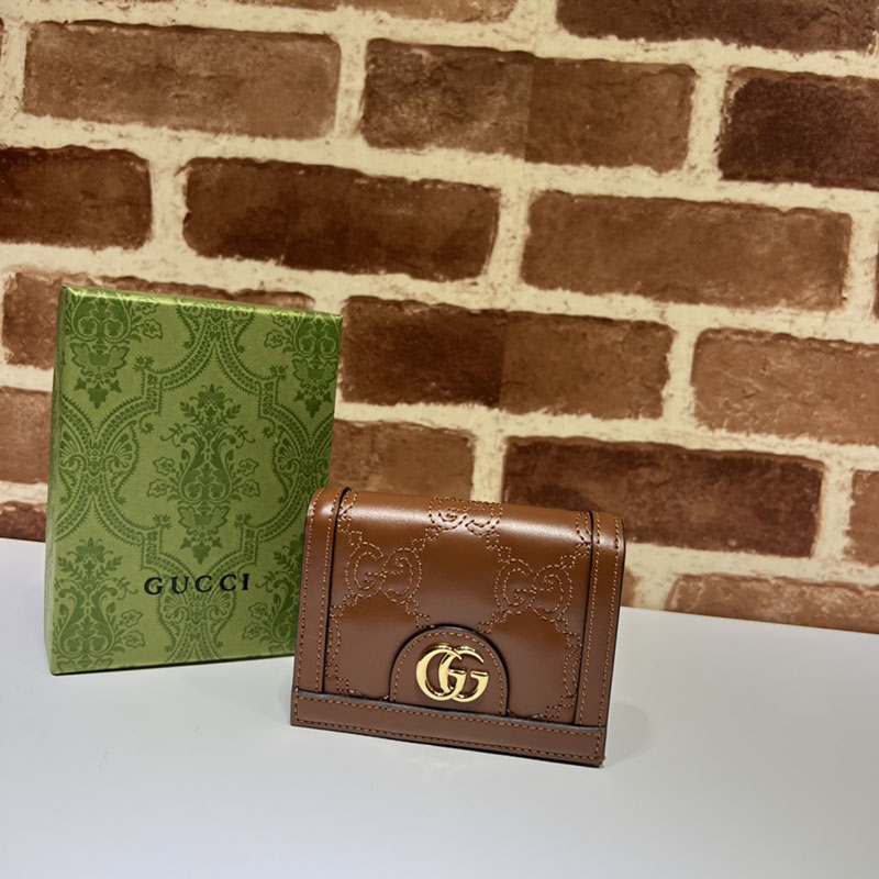 グッチ カードケース 小銭入れ グッチ GGマトラッセ カードケース ウォレット 723786 UM8IG 2535 ブラウン ゴールド金具
