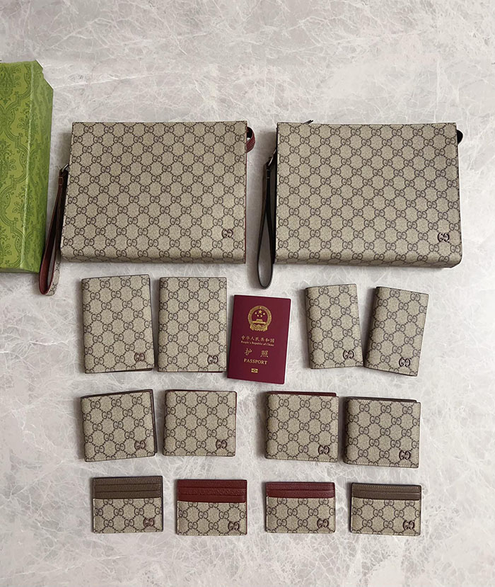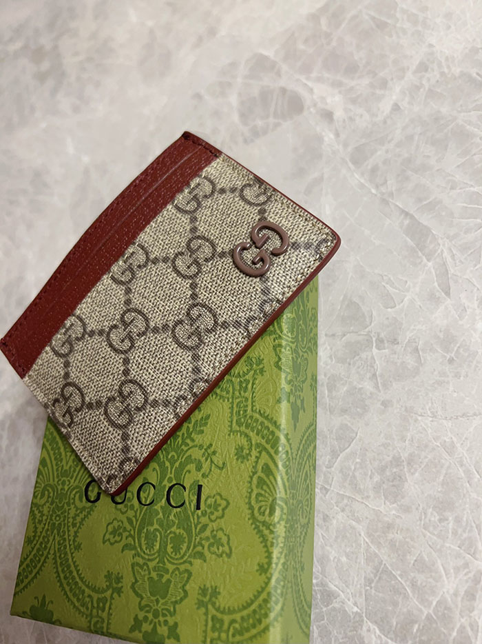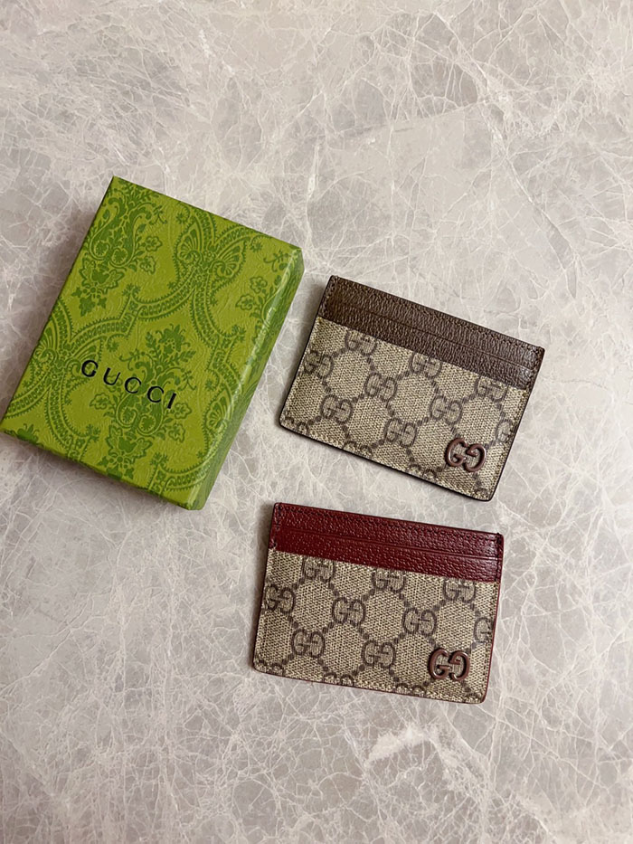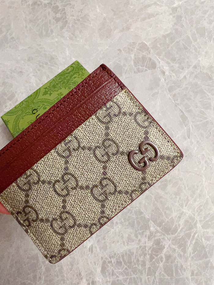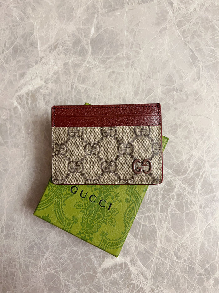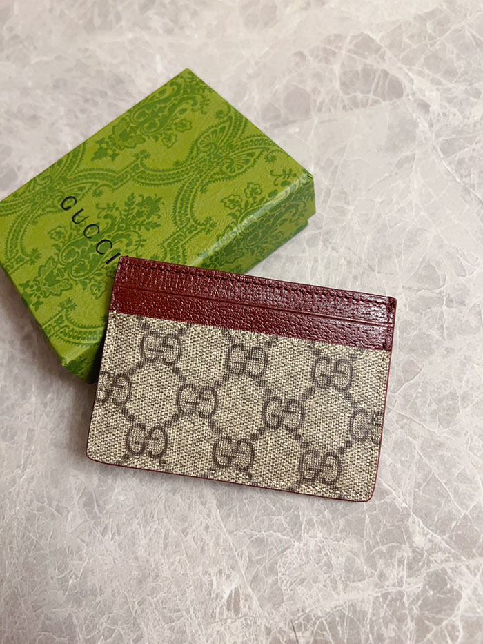 グッチ GG ディテール付き カードケース 768248 FACQC 9752 ベージュ&深い赤 カードケース メンズ 40代