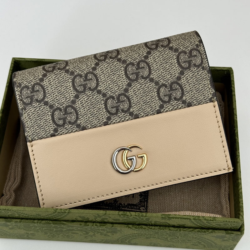 グッチ カードケース 二つ折り 小銭入れ付き 折財布 790055 AADQE 5741 ベージュ/エボニー カードケース 財布代わり 小銭