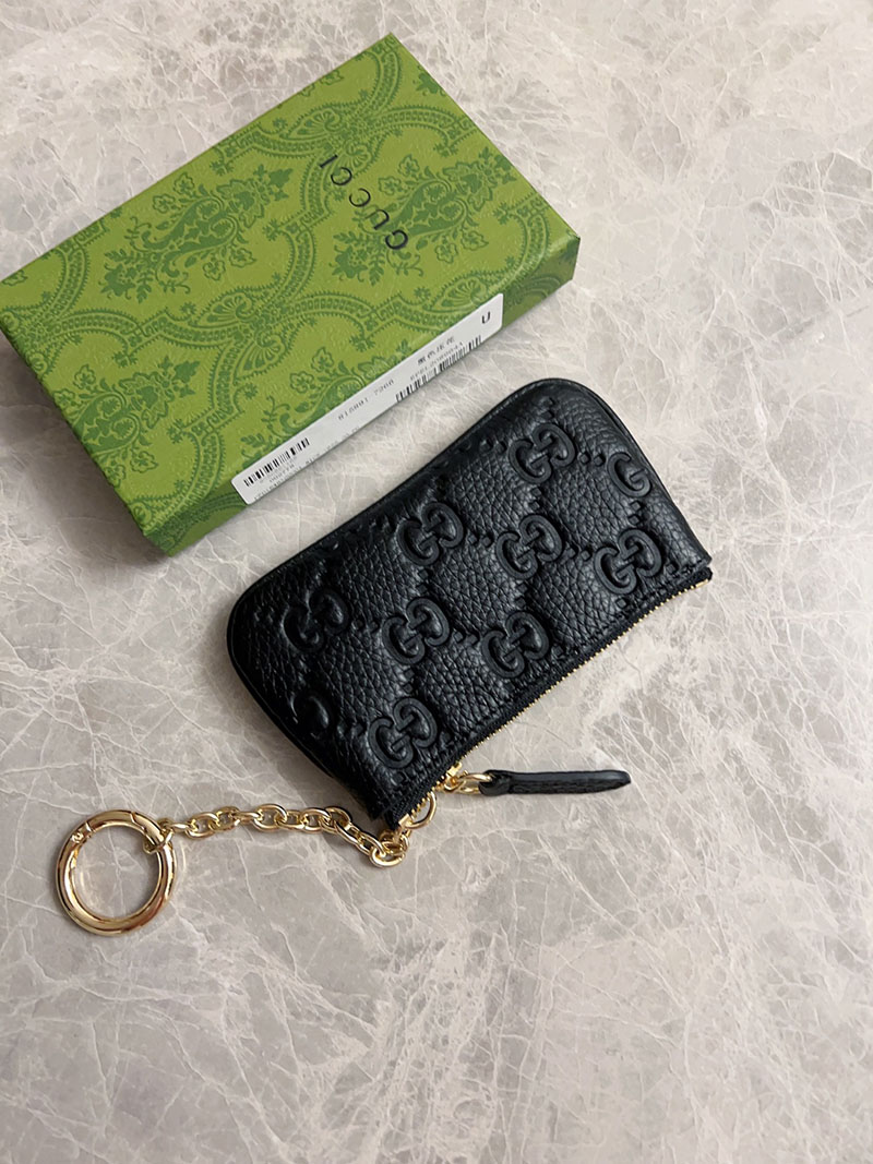グッチ カードケース 人気 GUCCI GGエンブレム キーポーチ ブラック 815891 AAEEM 1000 グッチ ポーチ 黒