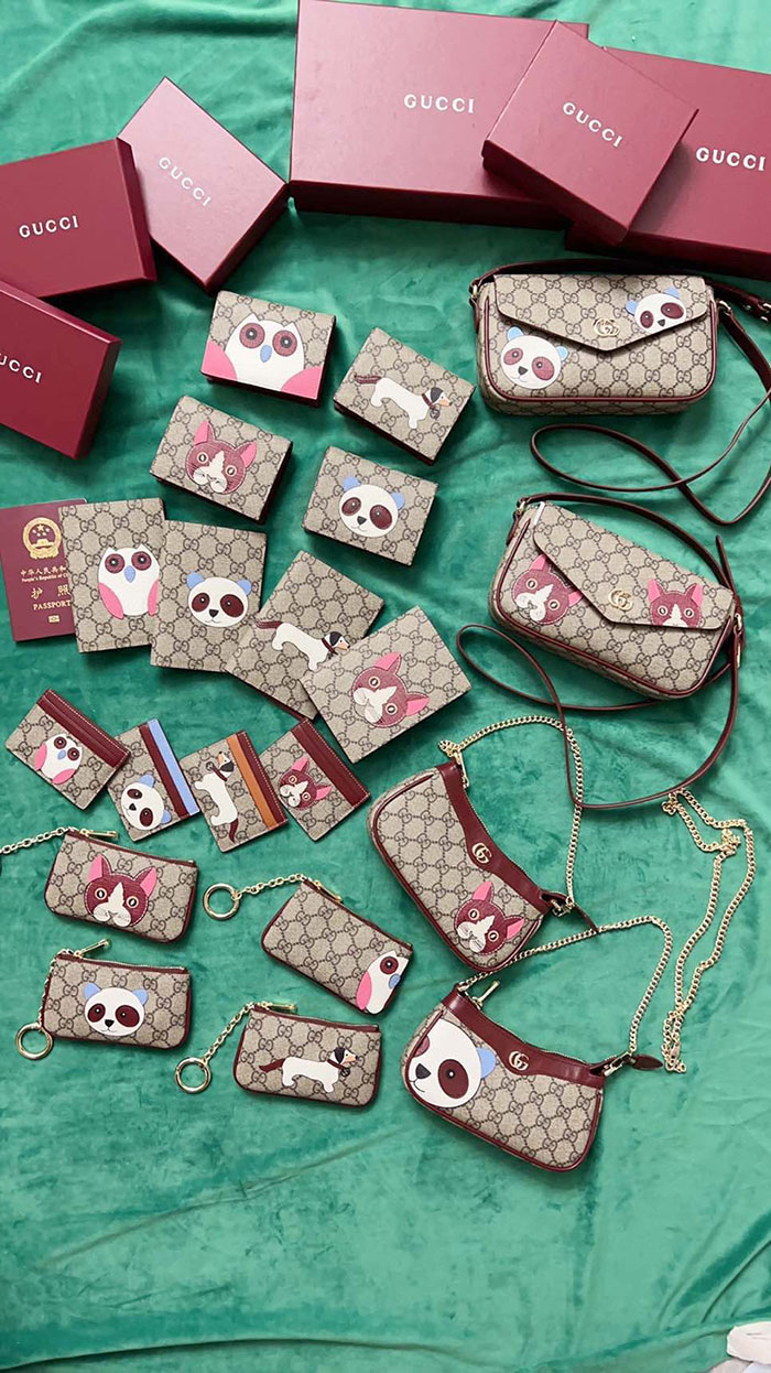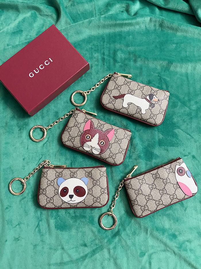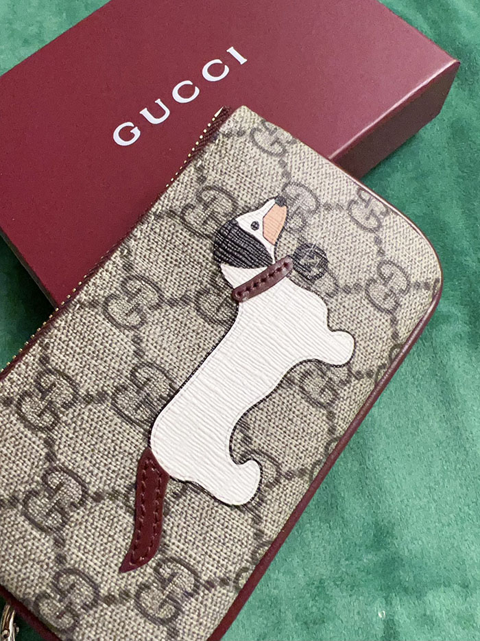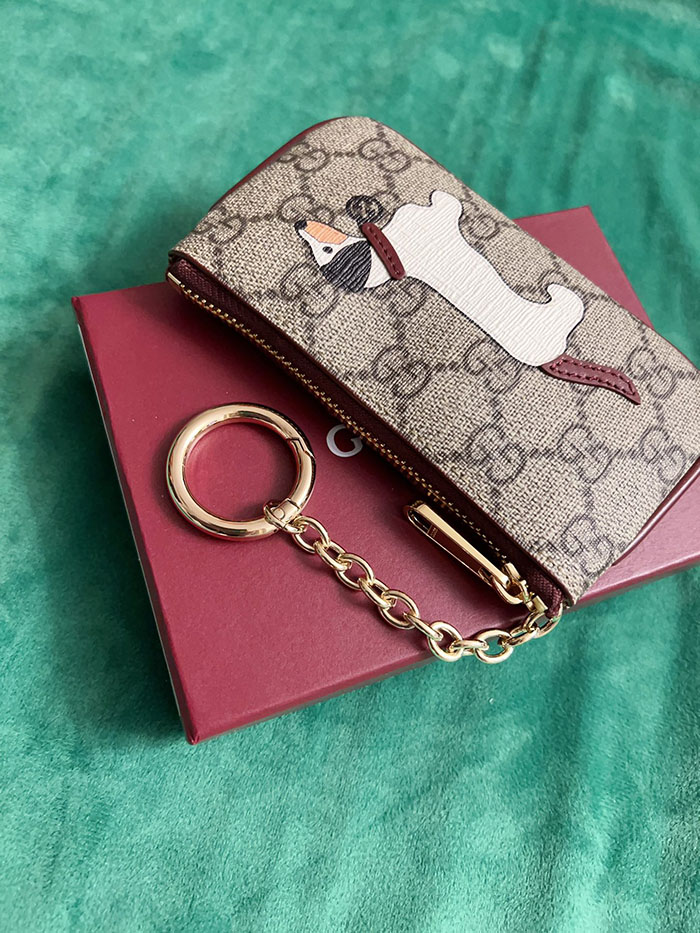 最新コレクションに、サバト・デ・サルノがデザインした「グッチ ズー」シリーズが登場。キャットやドッグ、パンダといった遊び心をくすぐるキュートなアニマルを、新しいGGパターンのコーティング ファブリックを用いたスモールアクセサリーに飾りました。そのプレイフルなモチーフの数々は、スクリーンプリントやレザー パッチワークの技術を使ってあしらっています。このキーケースは、フロントにマルチカラーのレザー パッチでドッグ ディテールを施しました。