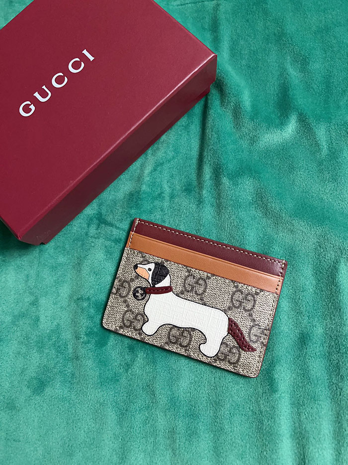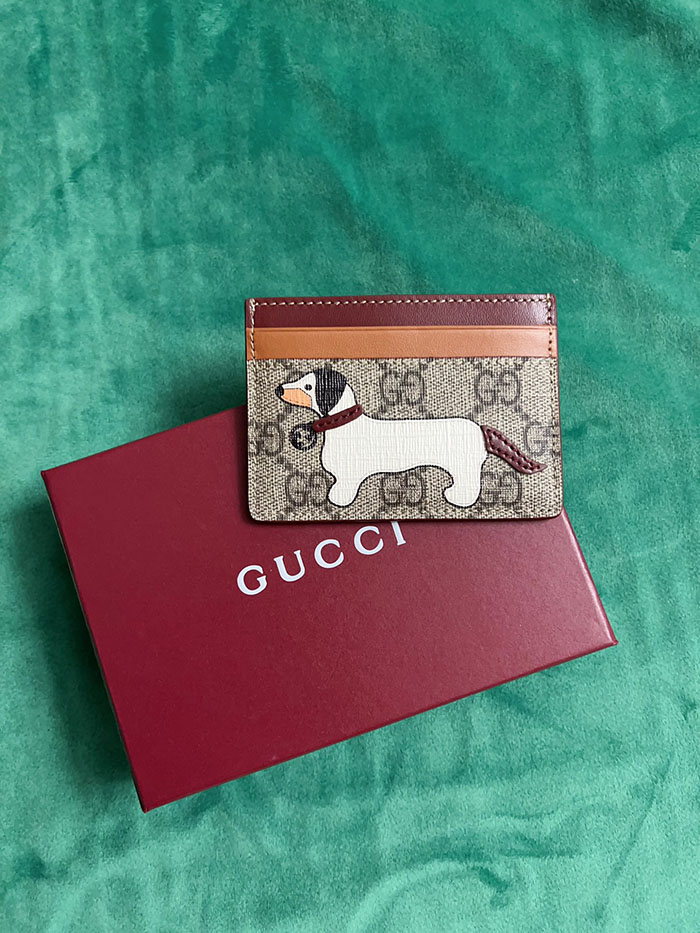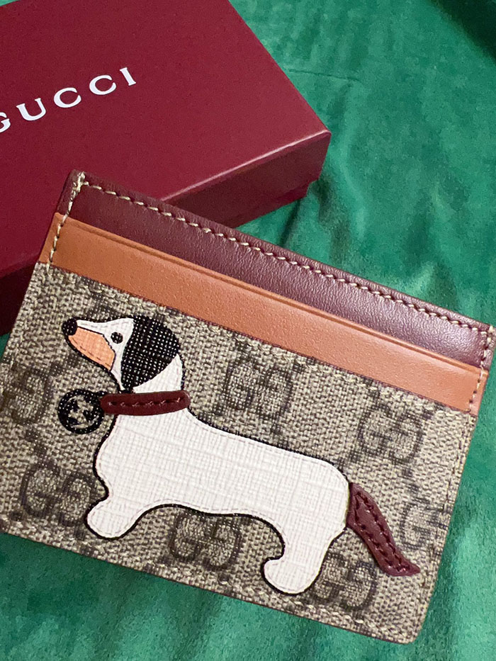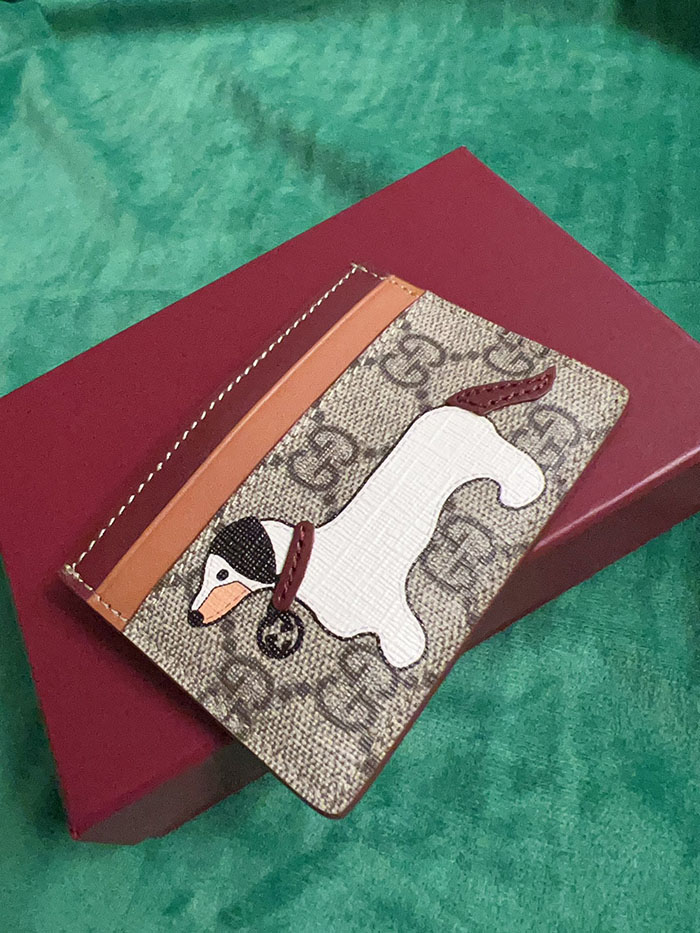 最新コレクションに、サバト・デ・サルノがデザインした「グッチ ズー」シリーズが登場。キャットやドッグ、パンダといった遊び心をくすぐるキュートなアニマルを、新しいGGパターンのコーティング ファブリックを用いたスモールアクセサリーに飾りました。そのプレイフルなモチーフの数々は、スクリーンプリントやレザー パッチワークの技術を使ってあしらっています。このカードケースには、ドッグのディテールを施しました。