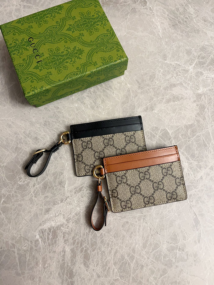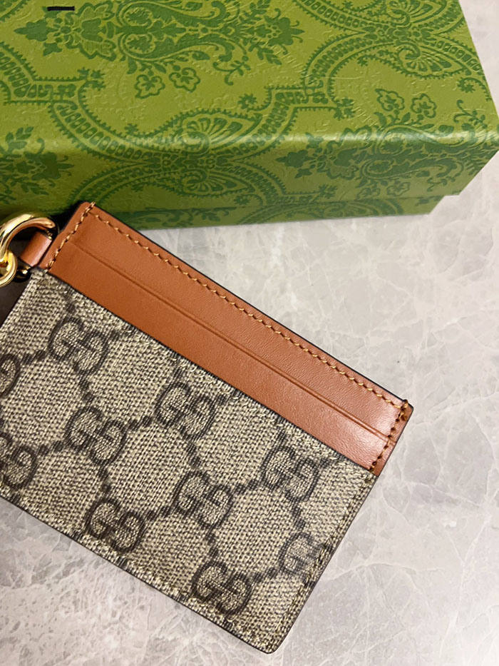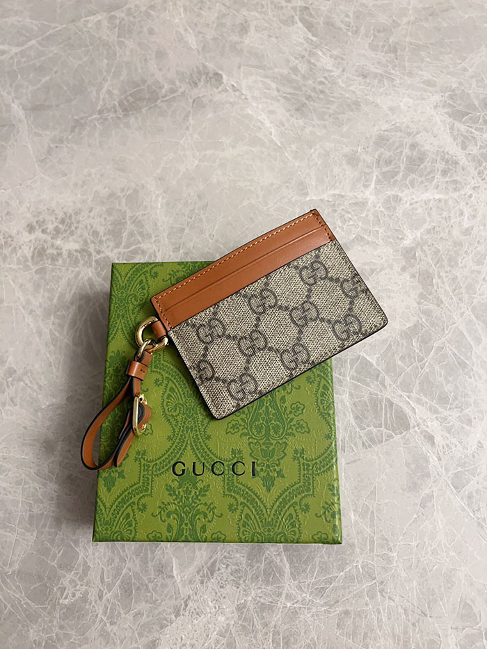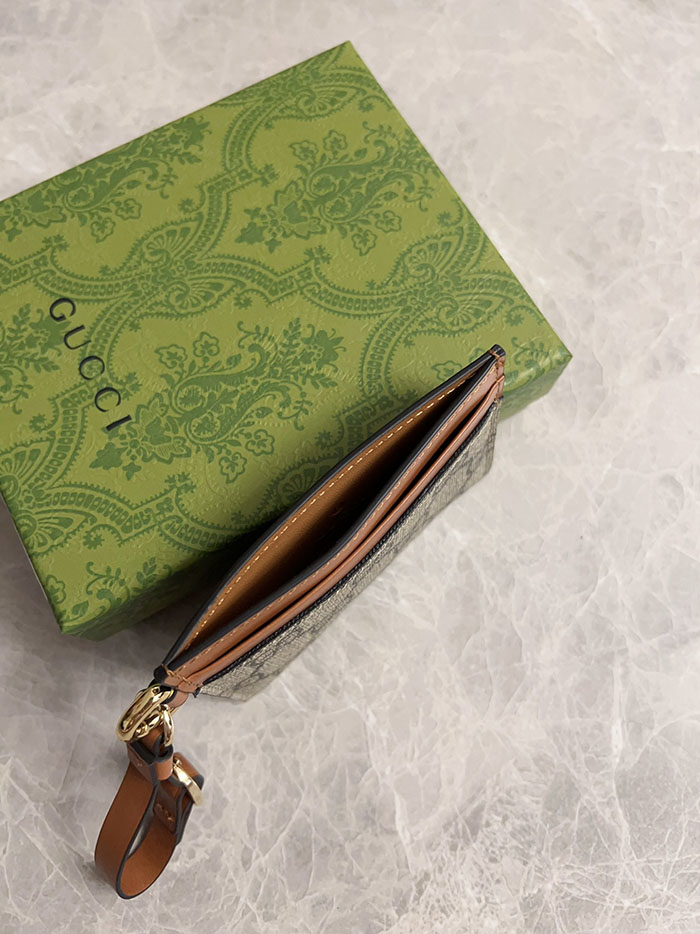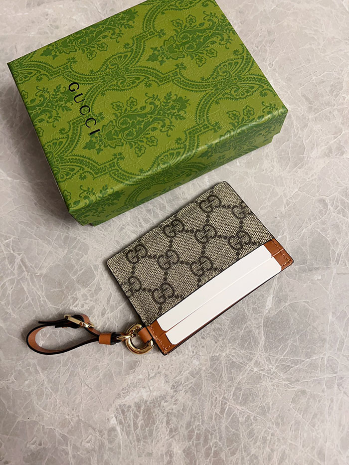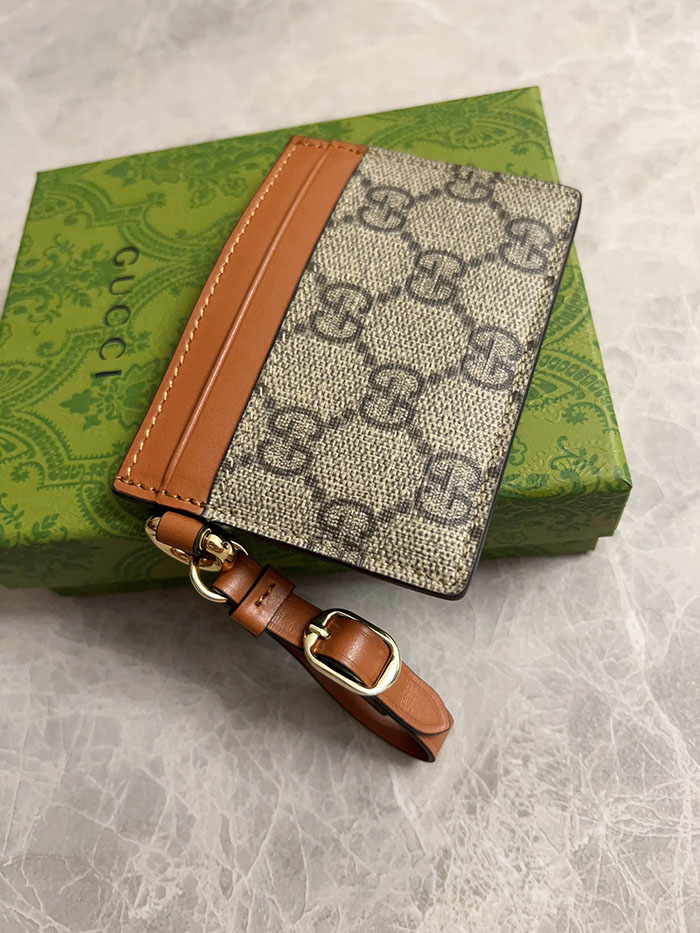 グッチ GGエンブレム ストラップ付き カードケース 819121 FAD6L 9758 ベージュ&ダークブラウン カードケース レディース 革