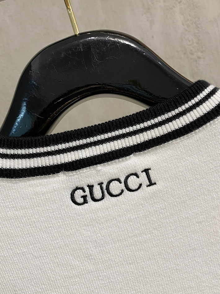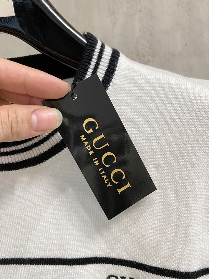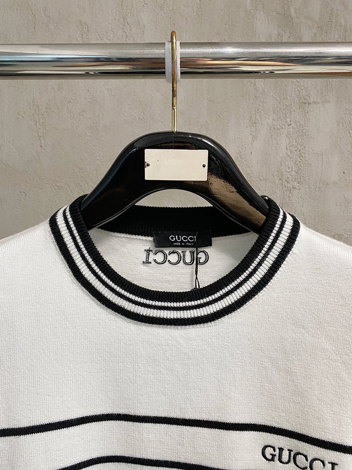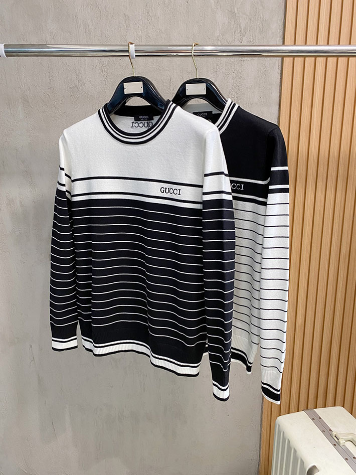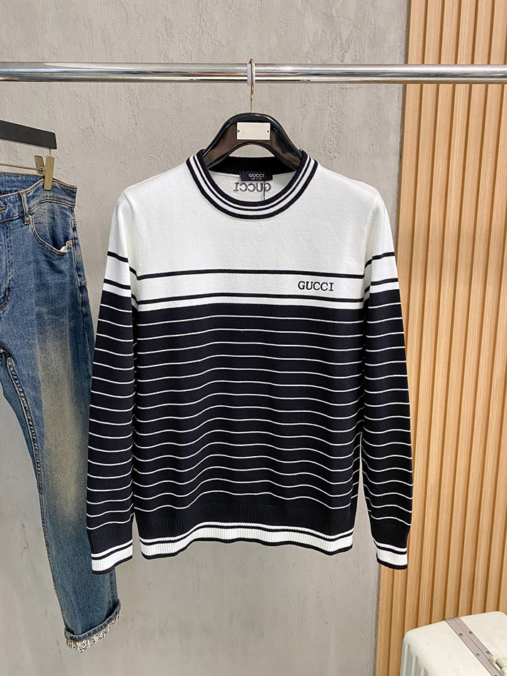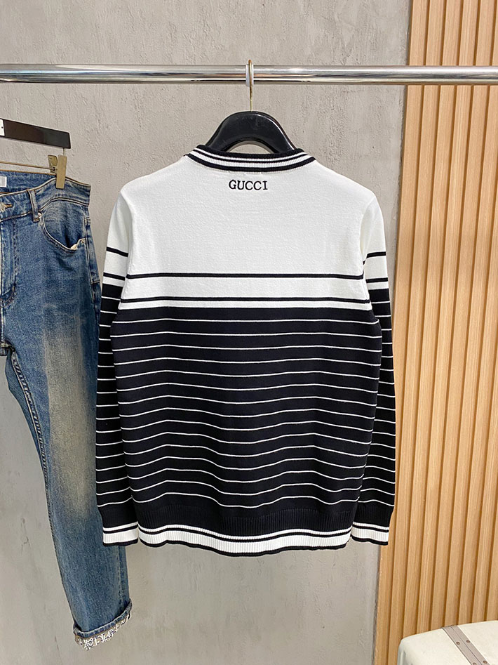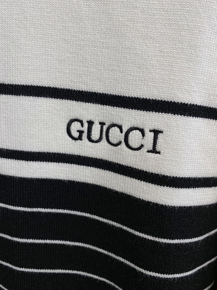 グッチ直営アウトレット店 GUCCI インターシャ シルクコットン セーター ブラック/ホワイト 2525059 グッチ ニット メンズ