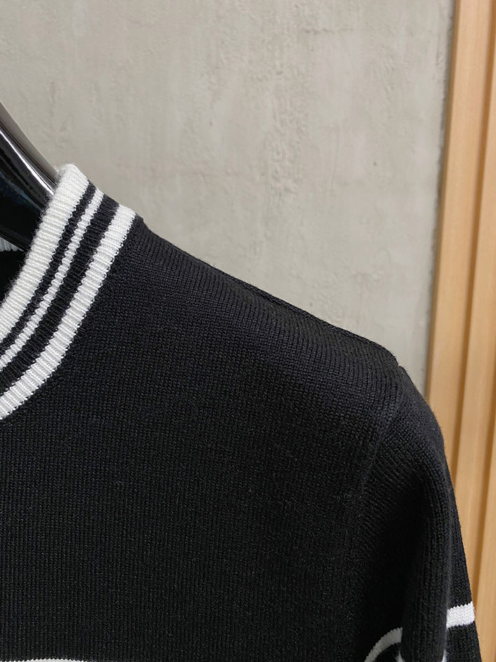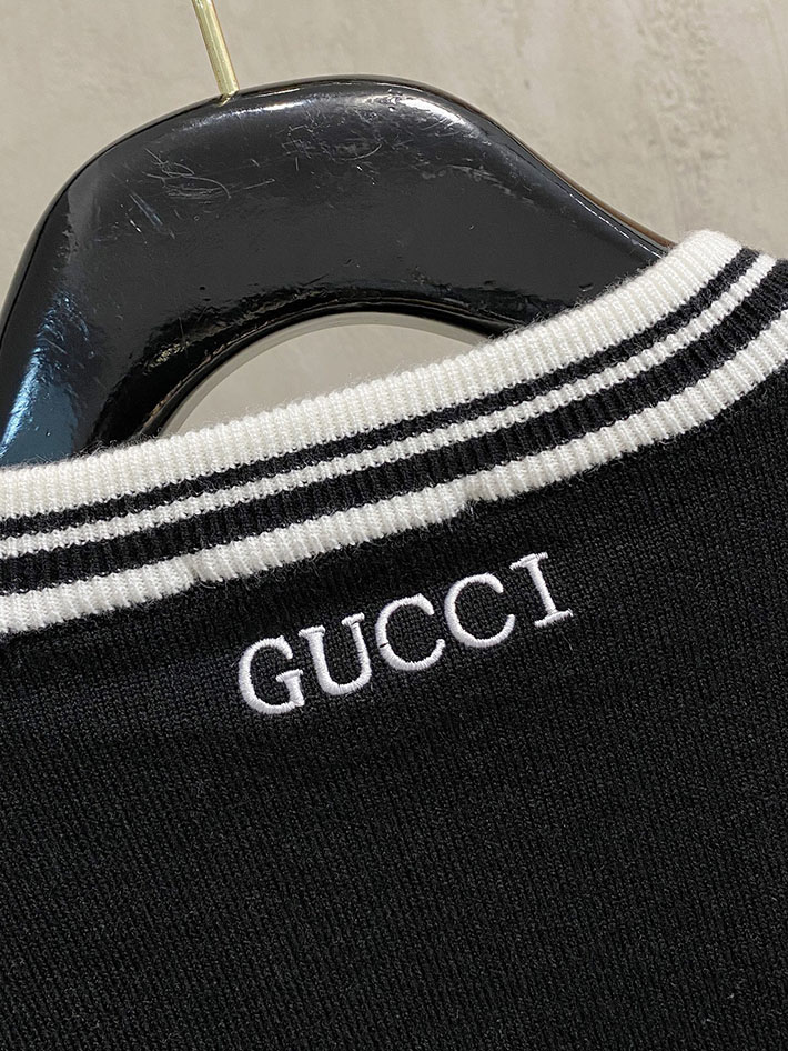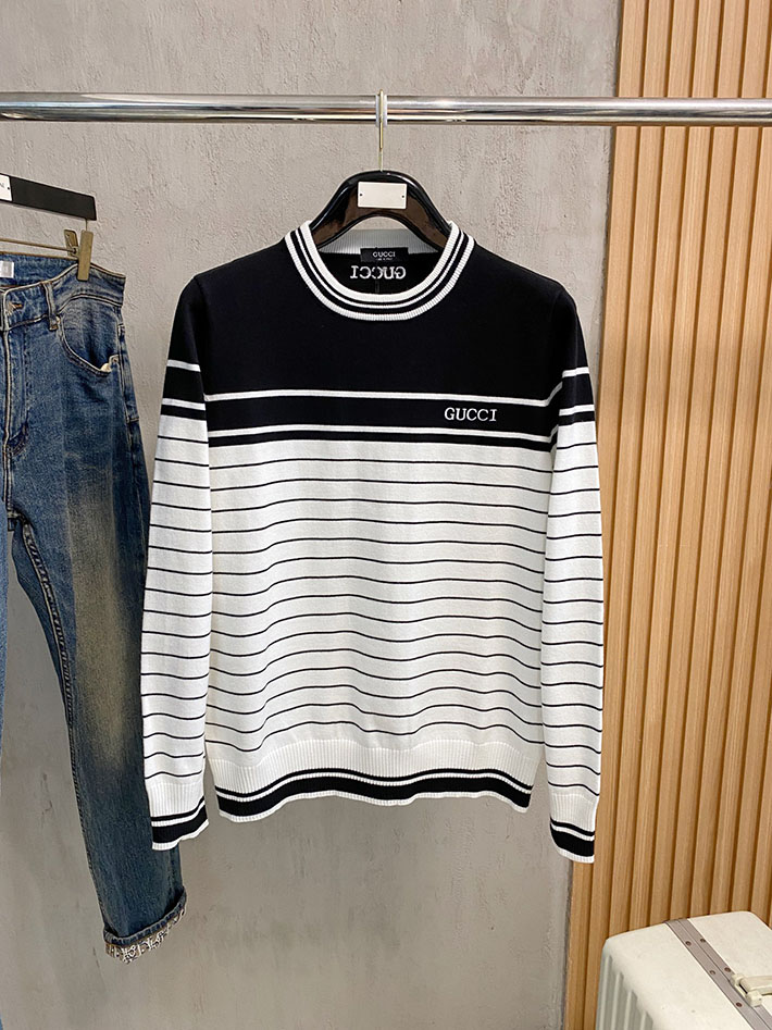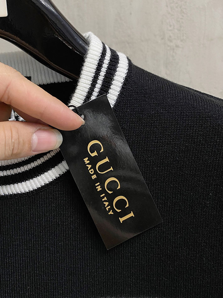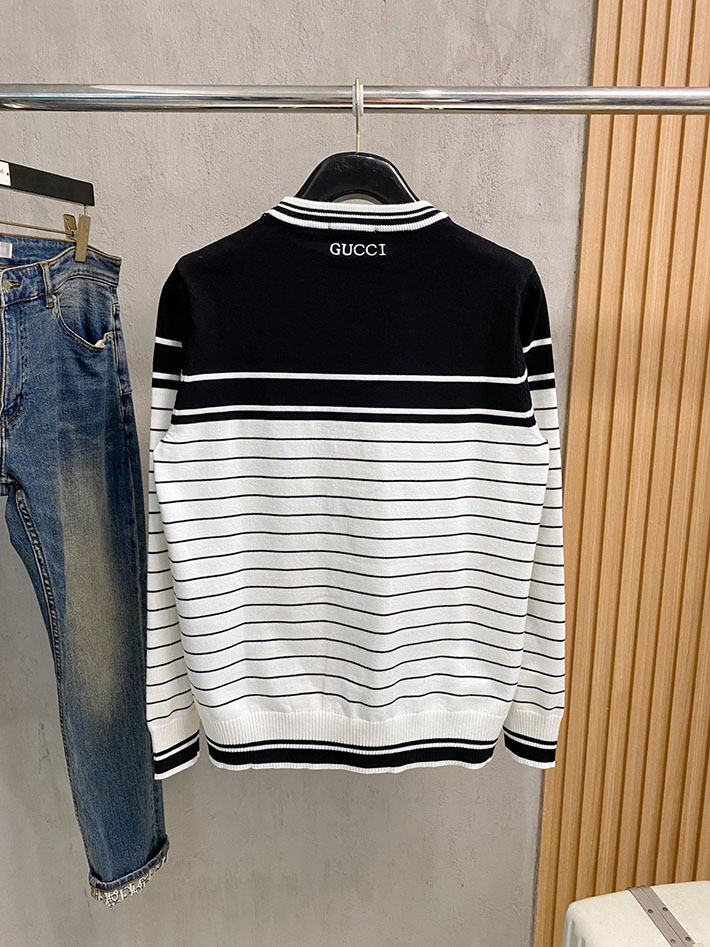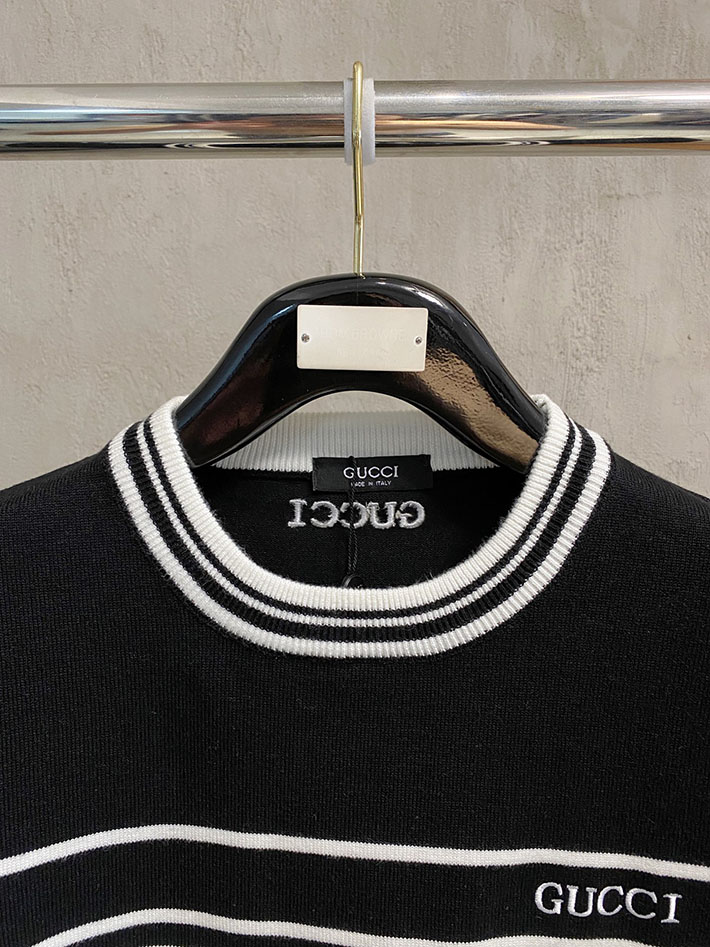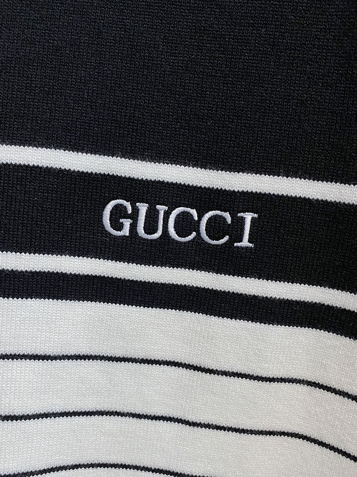 グッチ直営アウトレット店 GUCCI インターシャ シルクコットン セーター ブラック/ホワイト 2525060 グッチ セーター アウトレット