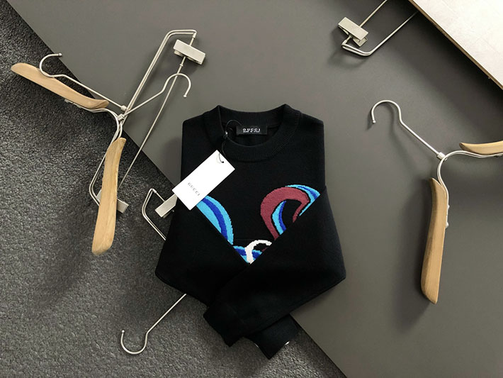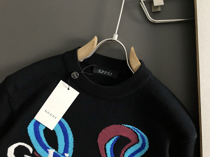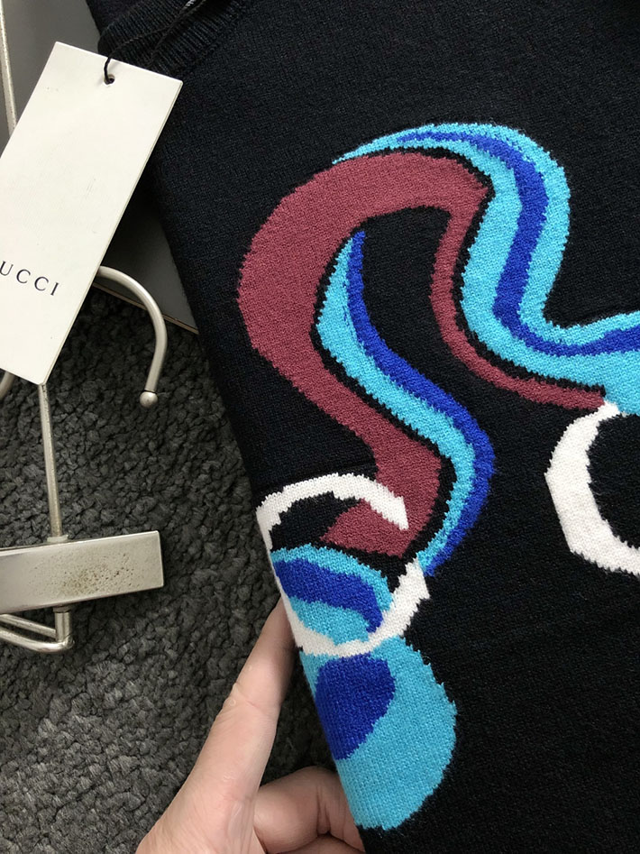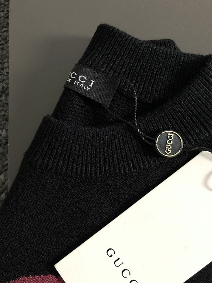 グッチ直営アウトレット店 GUCCI 25Cruise インターシャ ウールカシミヤセーター ブラック 2525275 グッチ セーター アウトレット