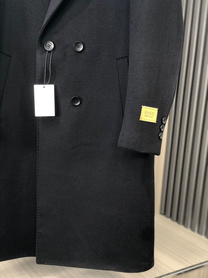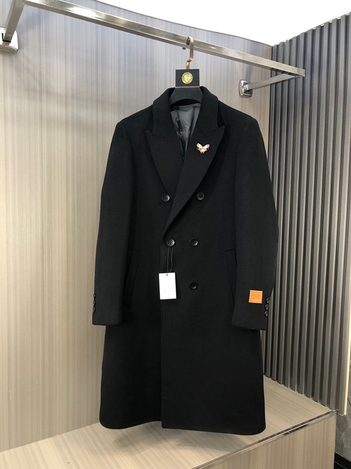 グッチ直営アウトレット店 GUCCI メンズ テーラードジャケット ウール コート ロング丈 ブラック 2525328 グッチ コート メンズ