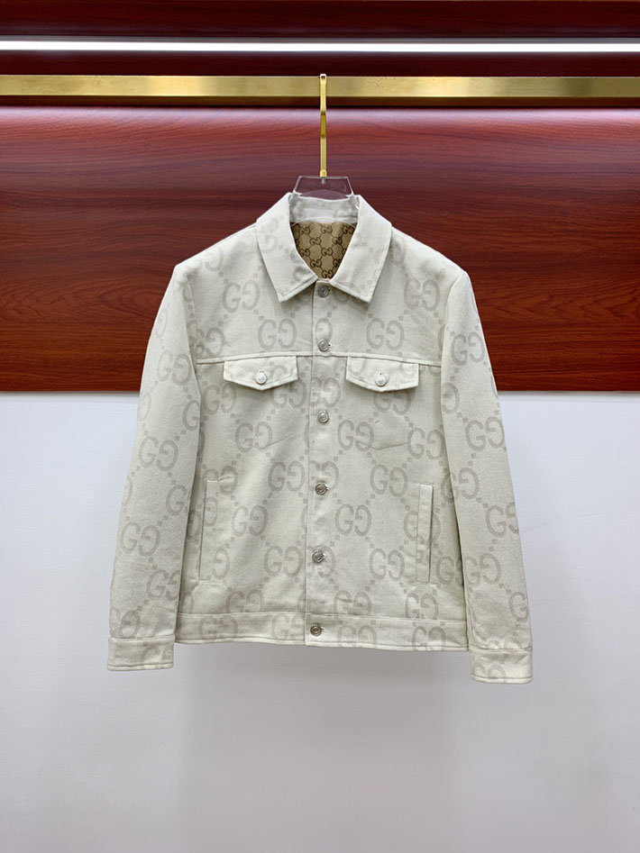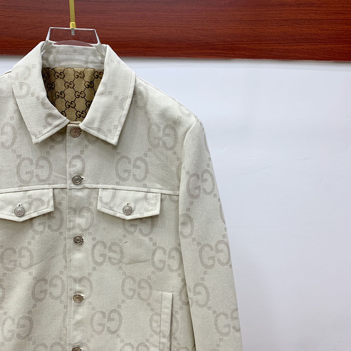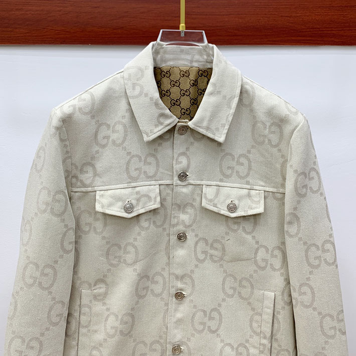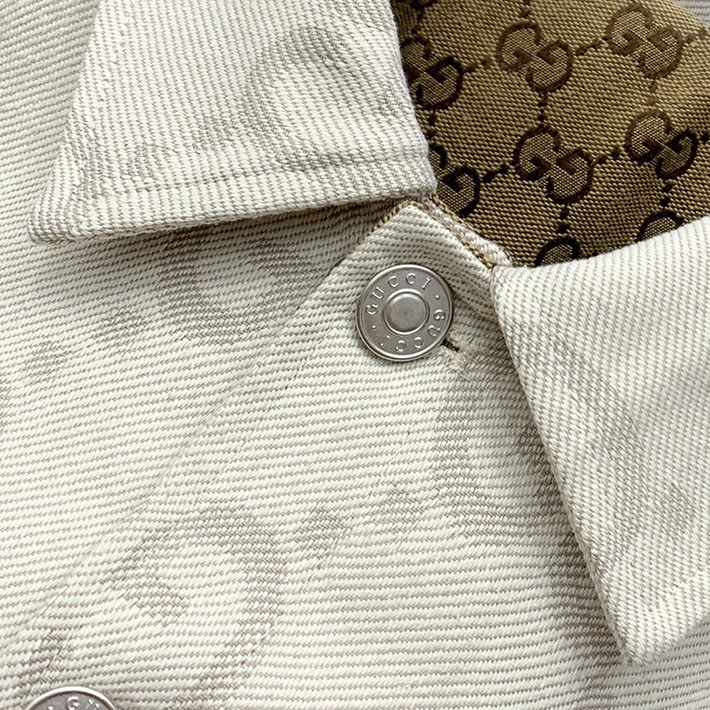 グッチ 服 アウトレット GUCCI GGパターン コットン×ヘンプ デニムジャケット ホワイト 2525627 グッチ ジャケット アウトレット